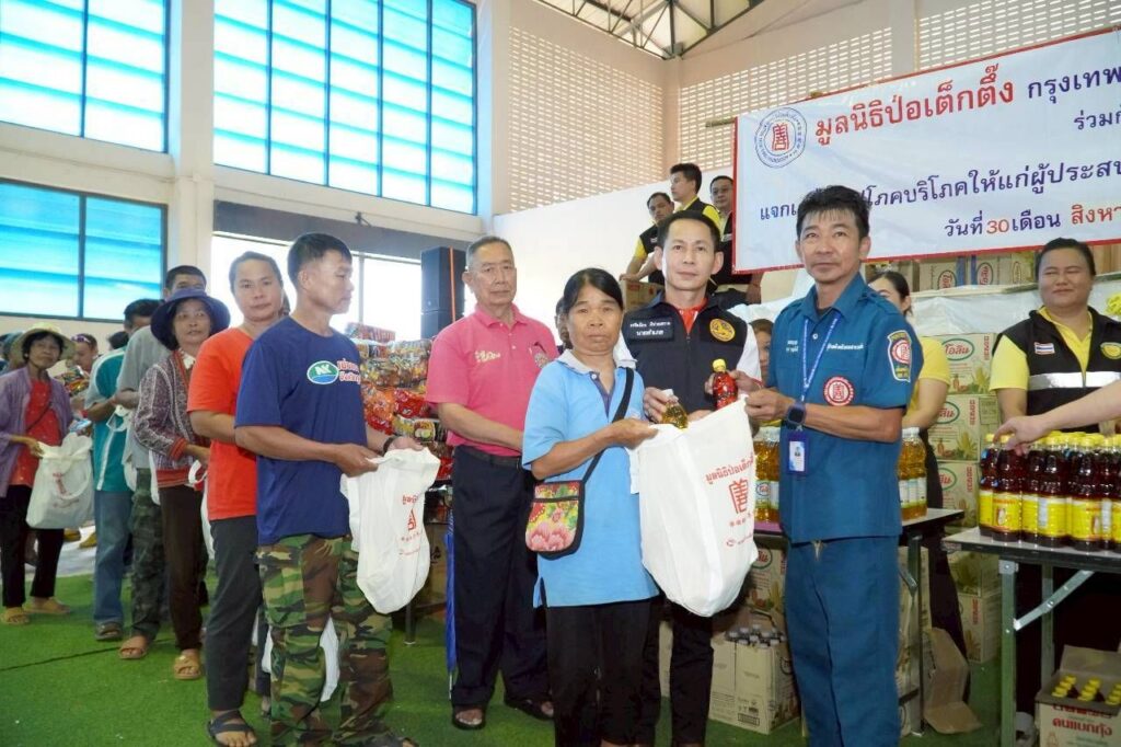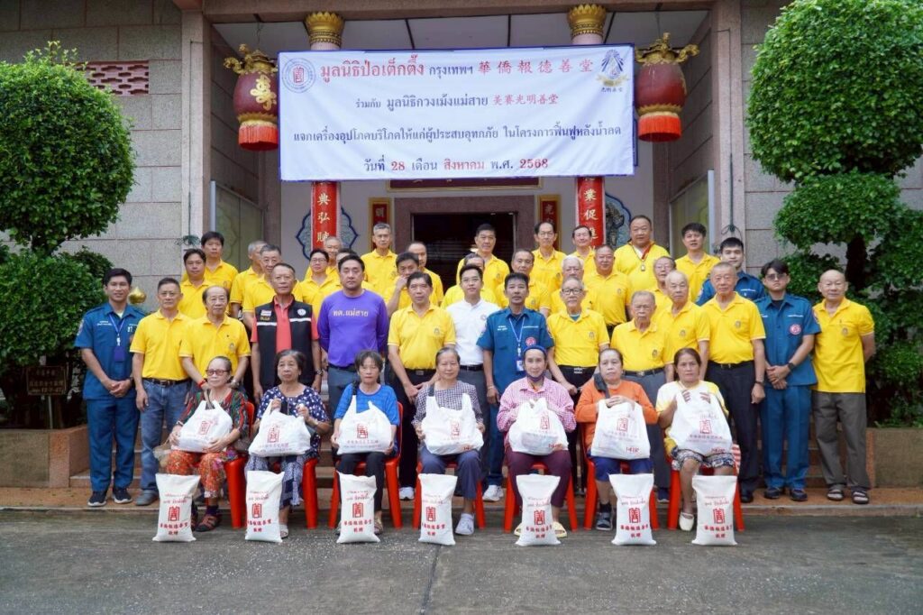 เมื่อเกิดอุทกภัย มูลนิธิป่อเต็กตึ๊ง ได้จัดทีมบรรเทาสาธารณภัย พร้อมเรือท้องแบน และ โรงครัวเคลื่อนที่เพื่อประกอบอาหารกล่อง พร้อมถุงยังชีพ ชุดยาเวชภัณฑ์ และอาหารสุนัขและแมว นำแจกจ่ายแก่ผู้ประสบภัย เพื่อการบรรเทาทุกข์และช่วยเหลือผู้ประสบภัยในพื้นที่ต่างๆ ในเบื้องต้น พร้อม ฝ่ายสังคมสงเคราะห์ โดยแผนกสาธารณภัย จะประสานหน่วยงานในพื้นที่เพื่อฟื้นฟูหลังน้ำลด โดยแจกเครื่องอุปโภคบริโภคที่จำเป็น รวมถึงมอบเงินค่าฌาปนกิจศพแก่ญาติผู้เสียชีวิตจากอุทกภัย รายละ 20,000 บาท และกรณีมีผู้เสียชีวิตจากเหตุอุทกภัย ญาติของผู้เสียชีวิตสามารถขอรับเงินช่วยเหลือค่าฌาปนกิจศพจากมูลนิธิป่อเต็กตึ๊ง ได้ที่ สายด่วนป่อเต็กตึ๊ง 1418 ต่อ ฝ่ายสังคมสงเคราะห์ นอกจากนี้ ในปี พ.ศ.2568 ฝ่ายสังคมสงเคราะห์ โดยแผนกส่งเสริมการศึกษาและอาชีพ ริเริ่มโครงการมอบวัสดุอุปกรณ์ประกอบอาชีพให้แก่ผู้ประสบอุทกภัยยากไร้ โดยร่วมกับกรมการพัฒนาชุมชน กระทรวงมหาดไทย โดยได้ทำพิธีมอบไปแล้ว 2 จังหวัดภาคเหนือ รวมงบประมาณการดำเนินงานโครงการฟื้นฟูหลังน้ำลด และมอบอุปกรณ์ประกอบอาชีพให้กับผู้ประสบอุทกภัยยากไร้ในปี 2568 กว่า 20.6 ล้านบาท