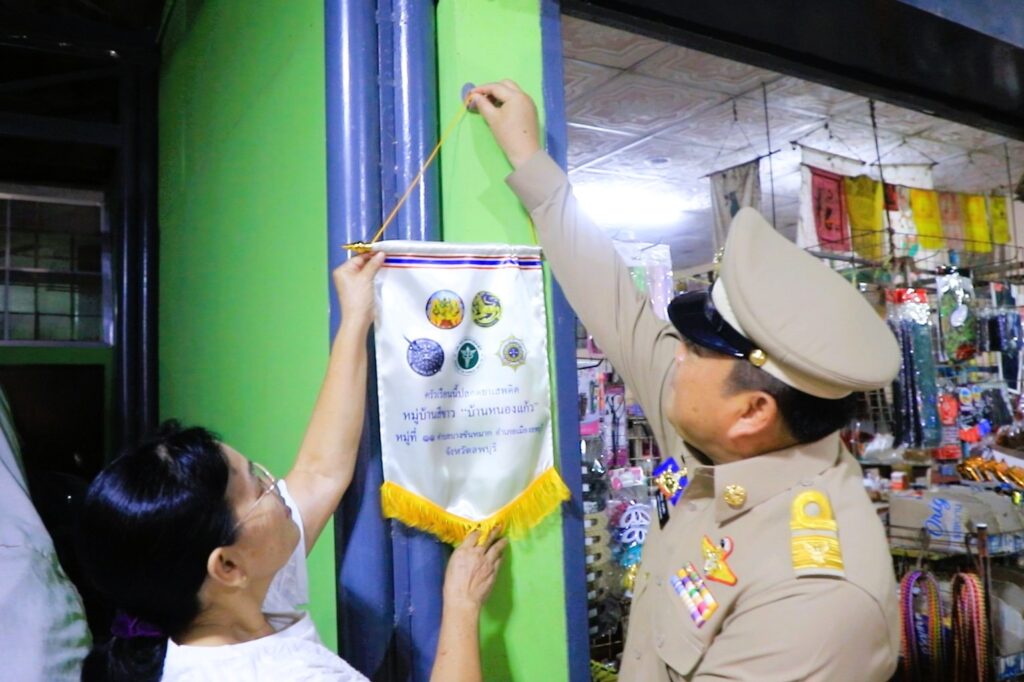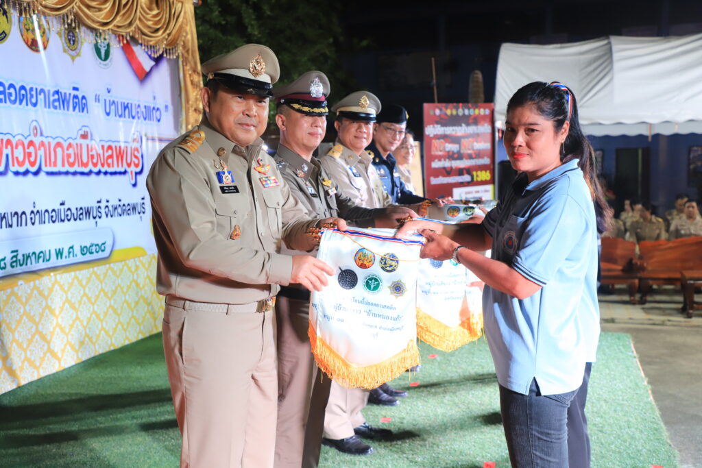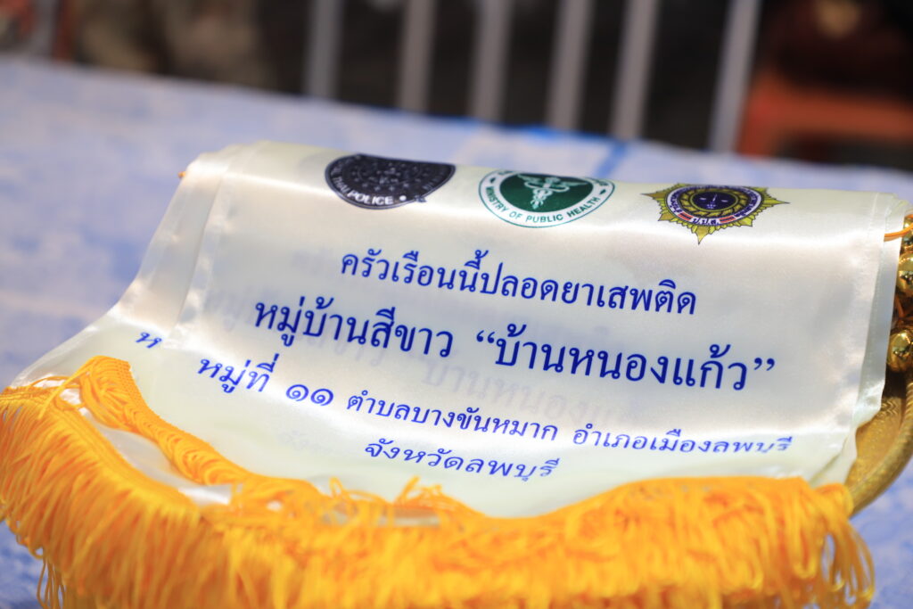 ซึ่งหลังพิธีมอบธงจากครัวเรือนปลอดยาเสพติด นายปรัชญา เปปะตัง รองผู้ว่าราชการจังหวัดลพบุรี ได้นำส่วนราชการลงพื้นที่มอบธงครัวเรือนปลอดยาเสพติด ให้กับประชาชนในพื้นที่ 5 หลังคาเรือน โดยมีการแห่ขบวนกลองยาวและนางรำไปมอบด้วยเพื่อเป็นการเฉลิมฉลองและประกาศชัยชนะปัญหายาเสพติดภายในบ้านหนองแก้ว หมู่ที่ 11 ตำบลบางขันหมาก อำเภอเมืองลพบุรี จังหวัดลพบุรี อีกด้วย
