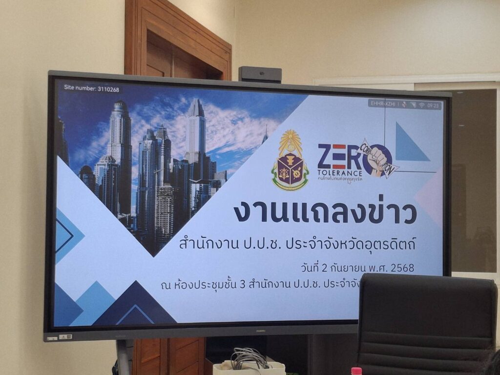 วันอังคารที่ 2 กันยายน 2568 เวลา 09.00 น. ณ ห้องประชุมชั้น 3 สำนักงาน ป.ป.ช. ประจำจังหวัดอุตรดิตถ์ ตำบลทุ่งยั้ง อำเภอลับแล จังหวัดอุตรดิตถ์ นายชัยวัฒน์ ทองเกษม ผู้อำนวยการสำนักงาน ป.ป.ช. ประจำจังหวัดสุโขทัย รักษาราชการแทนผู้อำนวยการสำนักงาน ป.ป.ช. ประจำจังหวัดอุตรดิตถ์ ในฐานะโฆษกสำนักงาน ป.ป.ช. ประจำจังหวัดอุตรดิตถ์ ได้แถลงผลการดำเนินงานของสำนักงาน ประจำปีงบประมาณ 2568 (ระหว่างวันที่ 1 ตุลาคม 2567 – 31 สิงหาคม 2568)