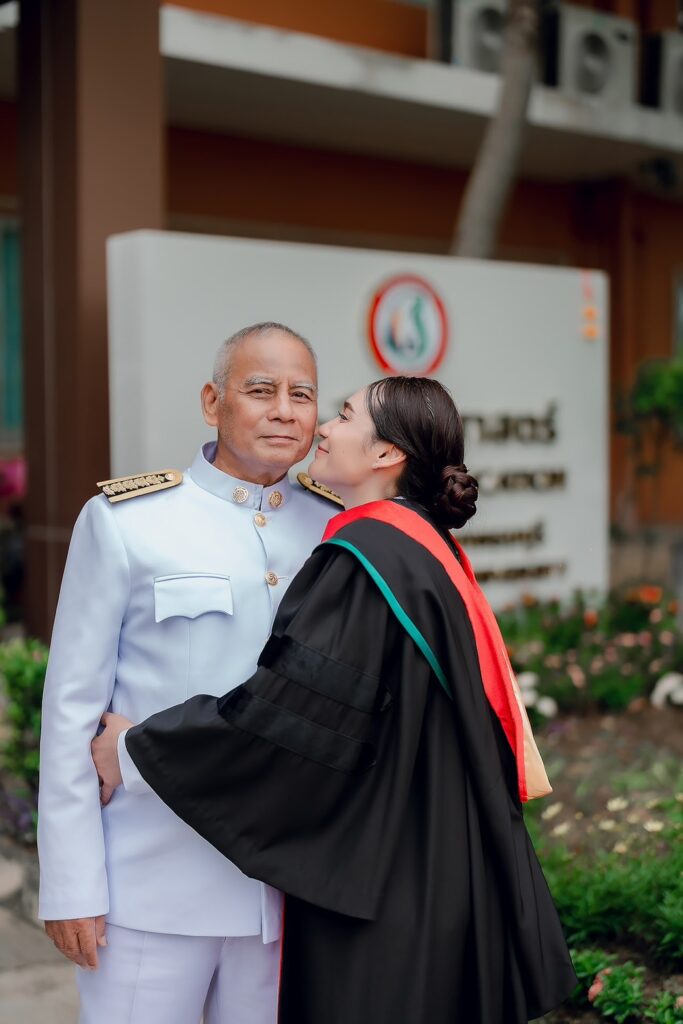 งานนี้มีคุณพ่อคุณแม่มาร่วมแสดงความยินดีพร้อมหน้า แม้จะเลิกรากันไปหลายปี แต่คุณพ่อสุรสิทธิ์ แน่งน้อย และคุณแม่ดวงตา แก้วคำศรี โคจรมาพบกันอีกครั้งในงานรับปริญญาของลูกสาวสุดที่รัก โดย ครูสาว เผยความรู้สึกว่า