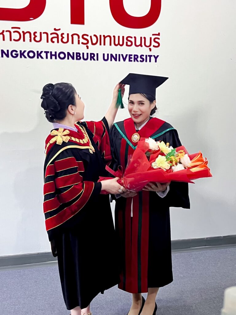 ล่าสุด ครูสาว ที่ได้โอกาสจาก “มหาวิทยาลัยกรุงเทพธนบุรี” ไปต่อยอดในเส้นทางผู้บริหารในอนาคต ด้วยการศึกษาต่อ จนสำเร็จการศึกษาระดับปริญญาโทศึกษาศาสตรมหาบัณฑิต สาขาวิชาการบริหารการศึกษา มหาวิทยาลัยกรุงเทพธนบุรี โดยมีพิธีเข้ารับพระราชทานปริญญาบัตรไปเมื่อวันอาทิตย์ที่ 31 สิงหาคม 2568 ณ อาคาร Bangkok Thonburi Hall มหาวิทยาลัยกรุงเทพธนบุรี ที่ผ่านมา