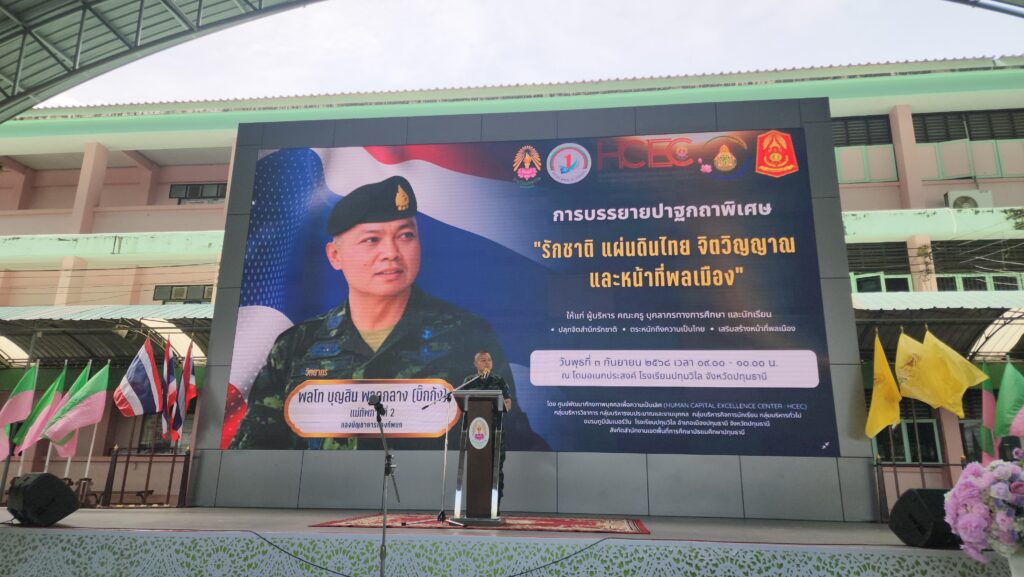 เมื่อเวลา 09.00 น. วันที่ 3 สิงหาคม 2568 ที่ โดมอเนกประสงค์ โรงเรียนปทุมวิไล อ.เมือง จ.ปทุมธานี พลโท บุญสิน พาดกลาง หรือ บิ๊กกุ้ง แม่ทัพภาคที่ 2 กองบัญชาการกองทัพบก ได้บรรยายปาฐกถาพิเศษ เรื่อง รักชาติ แผ่นดินไทย จิตวิญญาณ และหน้าที่พลเมือง โดยมี คณะผู้บริหารสำนักงานเขตพื้นที่การศึกษามัธยมศึกษาปทุมธานี ผู้อำนวยการโรงเรียนต่างๆ คณะครู บุคลากรทางการศึกษา นักเรียนโรงเรียนปทุมวิไล และ นักเรียนโรงเรียนข้างเคียงเข้าร่วมรับฟังกว่า 4,000 คน