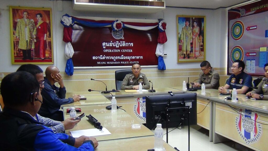 03 09 68 เวลา 10.00 น. ที่ศูนย์ปฏิบัติการ สถานีตำรวจภูธรเมืองมุกดาหาร พล.ต.ต.ไพโรจน์ ไทยพุทรา ผบก.ภ.จว.มุกดาหาร และพ.ต.อ.กิตเตชิษฐ์ บำรุง รอง ผบก.ภ.จว มุกดาหาร ได้สั่งการให้ พ.ต.อ.ประยุทธ์ เรือนทองคำ ผกก.สภ.เมืองมุกดาหาร และ พ.ต.อ.วิจิตร บุญวรรณ ผกก.สส.ภ.จว.มุกดาหาร พ.ต.ท.ฉัตรมงคล บุญกลาง รอง ผกก.สืบสวน สภ.เมืองมุกดาหาร ดำเนินการสืบสวนติดตามผู้เกี่ยวข้องมาดำเนินคดีตามกฎหมายเด็ดขาด โดยชุดสืบสวน สภ.เมืองมุกดาหาร และชุดสืบสวน กก.สส.ภ.จว.มุกดาหาร ได้ลงพื้นที่ตรวจสอบ