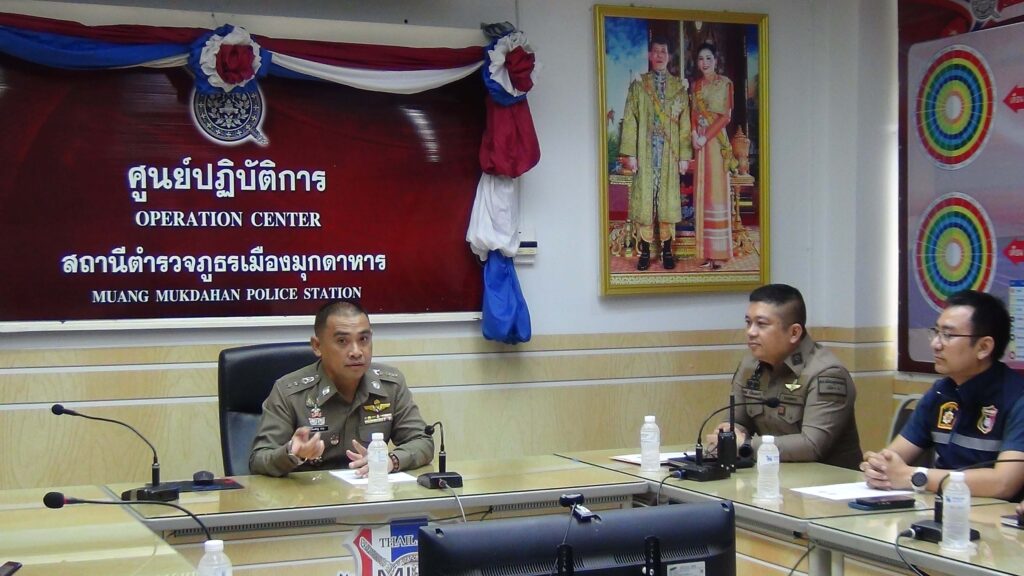 มุกดาหาร – ตำรวจภูธรจังหวัดมุกดาหาร สถานีตำรวภูธรเมืองมุกดาหาร แถลงผลการดำเนินการ กรณีปรากฏภาพข่าวชาวบ้านร้องถูกแก๊งเงินกู้นอกระบบข่มขู่ ยิงปืนโชว์ต่อหน้ากล้อง กรณีเหตุการทวงหนี้ที่ปรากฏในสื่อโซเชียล ล่าสุดรวบตัวแก๊งเงินกู้นอกระบบได้แล้วเหตุเกิดเมื่อปี 67