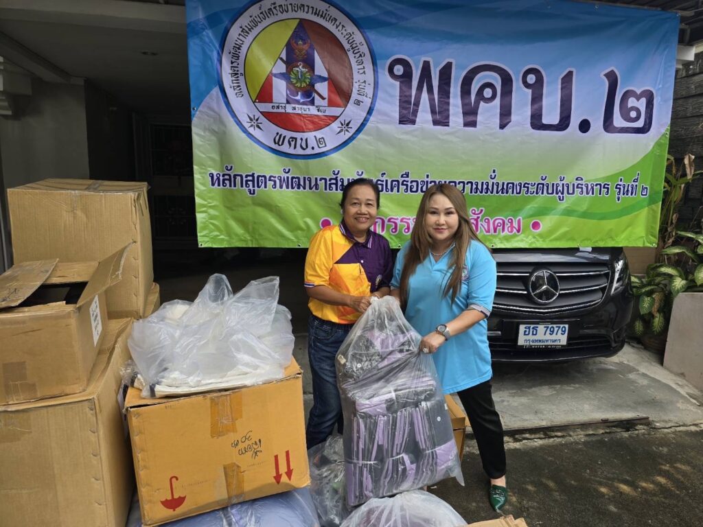 วันที่ 5 กันบายน 2568 พลตรีหญิงดาวใจ เจิมเจิดพล ประธานหลักสูตรพัฒนาสัมพันธ์เครือข่ายความมั่นคงระดับผู้บริหาร รุ่นที่ 2 พร้อมสมาชิก พคบ.2 และว่าที่พันตรี กิติเฉลิม โครงกาพย์ ประธานชมรมการกำลังสำรองแห่งประเทศไทย พร้อมสมาชิก เข้ารับมอบเสื้อผ้า ของขวัญ และสิ่งของเครื่องใช้ที่จำเป็นเป็นกำลังใจจากครอบครัว คริส พีรวัส แสงโพธิรัตน์ เพื่อช่วยเหลือผู้ประสบอุทกภัยและภัยหนาว จำนวน 1 คันรถบรรทุก 4 ล้อ เพื่อนำไปช่วยเหลือพี่น้องที่เดือดร้อนในจังหวัดภาคเหนือผ่าน นางสาว นวษภร ตะเคียนคาม ประธานชมรมการกำลังสำรองแห่งประเทศไทย จังหวัดเชียงราย มีผู้ร่วมกิจกรรมดังนี้