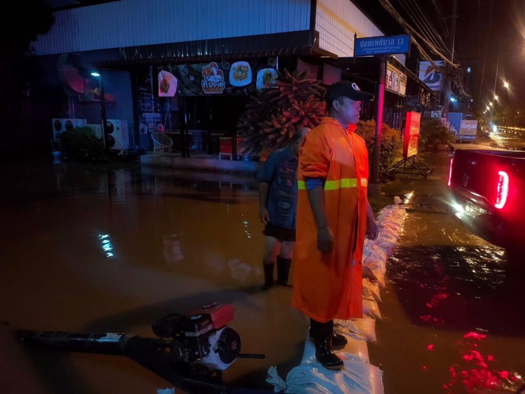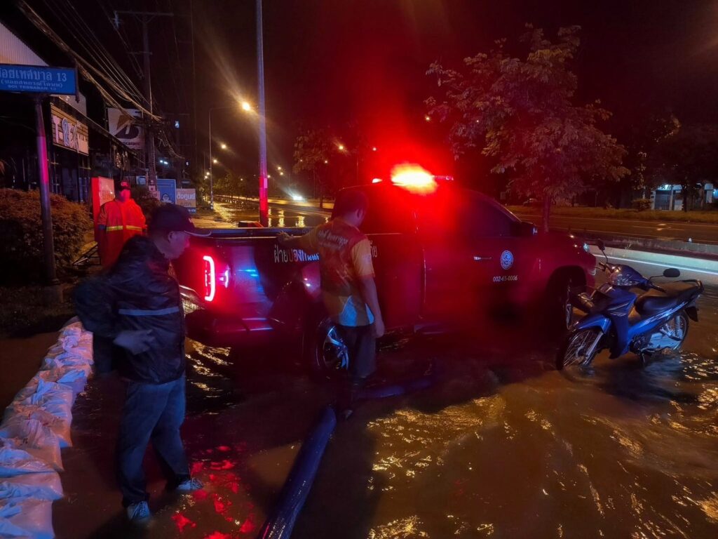 เจ้าหน้าที่งานป้องกันบรรเทาสารธารณภัย ได้ดำเนินการติดเครื่องสูบน้ำ ขนาด 12 นิ้ว ที่ประจำตามจุดที่มีน้ำท่วมขัง เครื่องสูบน้ำดีเซล จำนวน 3 เครื่อง และเครื่องสูบน้ำพญานาค จำนวน 2 เครื่อง