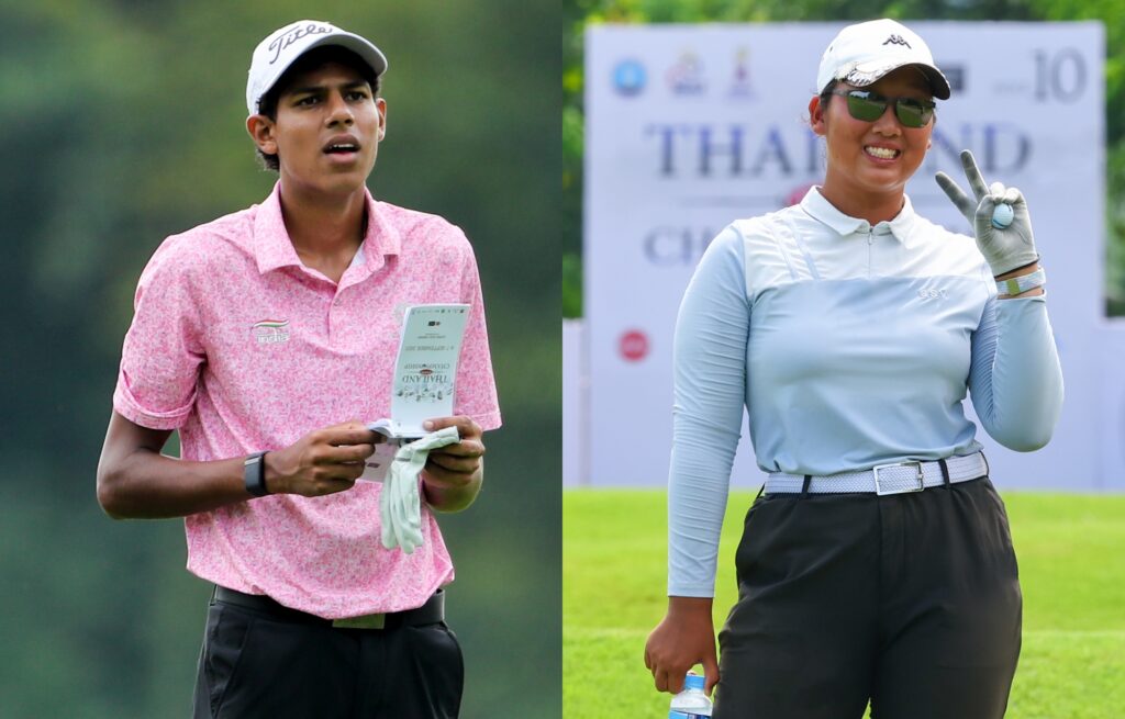 1.คานาฟ ซัวฮาน (ซ้าย) และ ซู หนิงเหยา จ่อแชมป์ทั้งคู่ทั้งในประเภทชาย และ หญิง ในการแข่งขันกอล์ฟเยาวชนนานาชาติรายการ ไทยแลนด์ จูเนียร์ แชมเปี้ยนชิพ 2025 ที่สนาม อัลไพน์ กอล์ฟ รีสอร์ท เชียงใหม่ จ.ลำพูน แบบพาร์ 72 จบรอบสองเมื่อวันเสาร์ที่ 6 กันยายน 2568