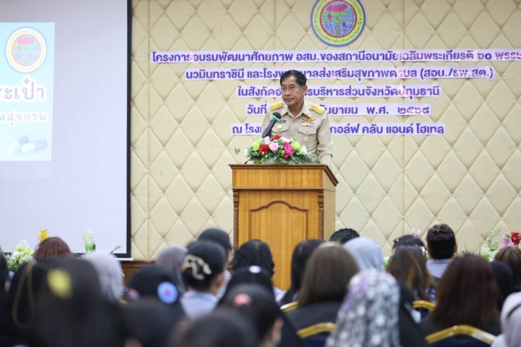 เมื่อวันที่ 8 กันยายน พ.ศ. 2568 ที่ โรงแรม ไพน์เฮิร์สท กอล์ฟ คลับ แอนด์ โฮเทล ตำบลคลองหนึ่ง อำเภอคลองหลวง จังหวัดปทุมธานี พลตำรวจโท คำรณวิทย์ ธูปกระจ่าง นายกองค์การบริหารส่วนจังหวัดปทุมธานี เป็นประธานในพิธีเปิดโครงการอบรมพัฒนาศักยภาพ อสม. ของสถานีอนามัยเฉลิมพระเกียรติ 60 พรรษา นวมินทราชินี และโรงพยาบาลส่งเสริมสุขภาพตำบล (สอน./รพ.สต.) ในสังกัดองค์การบริหารส่วนจังหวัดปทุมธานี โดยมีคณะผู้บริหาร พร้อมทั้งนายชัยวัฒน์ อินทร์เลิศ ประธานสภาองค์การบริหารส่วนจังหวัดปทุมธานี สมาชิกสภาองค์การบริหารส่วนจังหวัดปทุมธานี นายยุทธศักดิ์ ชูประเสริฐ นายกเทศมนตรีเมืองคลองหลวง นายอุดม อินทร์เลิศ นายกเทศมนตรีตำบลคลองพระอุดม หัวหน้าส่วนราชการ ผู้อำนวยการโรงพยาบาลส่งเสริมสุขภาพตำบล ข้าราชการ พนักงานกองสาธารณสุข ผู้แทนจากเทศบาลเมืองปทุมธานี และองค์การบริหารส่วนตำบลระแหง ให้เกียรติเข้าร่วมพิธี