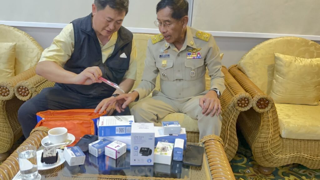 ส่วน นายแพทย์ พงษ์ศักดิ์ เจริญงามเสมอ ที่ปรึกษาพิเศษนายกองค์การบริหารส่วนจังหวัดปทุมธานี กล่าวว่า เวลาทหารไปออกรบ ต้องมีปืน แต่ อสม.ออกปฏิบัติหน้าที่ไปมือเปล่า ก็ไม่รู้จะไปช่วยเหลือประชาชนอย่างไร ดังนั้นทาง อบจ.ปทุมธานี โดย ท่าน พลตำรวจโท คำรณวิทย์ ธูปกระจ่าง นายก อบจ.ปทุมธานี ท่านเล็งเห็นถึงความสำคัญ อสม.จะเข้าไปดูแลประชาชน ในพื้นที่จะต้องมีอุปกรณ์ เราจึงดำเนินการจัดซื้อกระเป๋าพร้อมอุปกรณ์ ที่จำเป็น โดยเฉพาะเรื่องของการตรวจโรค NCD หรือ โรคไม่ติดต่อ ซึ่งโรคพวกนี้มีความอันตราย อาทิ เบาหวาน เราจะมีชุดเจาะตรวจหาน้ำตาลในเลือด เรื่องของความดันโลหิตสูง เรามีที่วัดความดัน เรื่องของโรคอ้วน เรามีเครื่องชั่งน้ำหนักและสายวัด หรือแม้แต่การวัดไข้ การดูคอ ดูออกซิเจน ซึ่งของเหล่านี้ผมคิดว่าคือของพื้นฐาน ในการดูแลผู้ป่วยเบื้องต้น ซึ่งถ้า อสม.มีเครื่องมือพวกนี้จะสามารถดูและประชาชนได้อย่างเข้าถึงและครบถ้วน