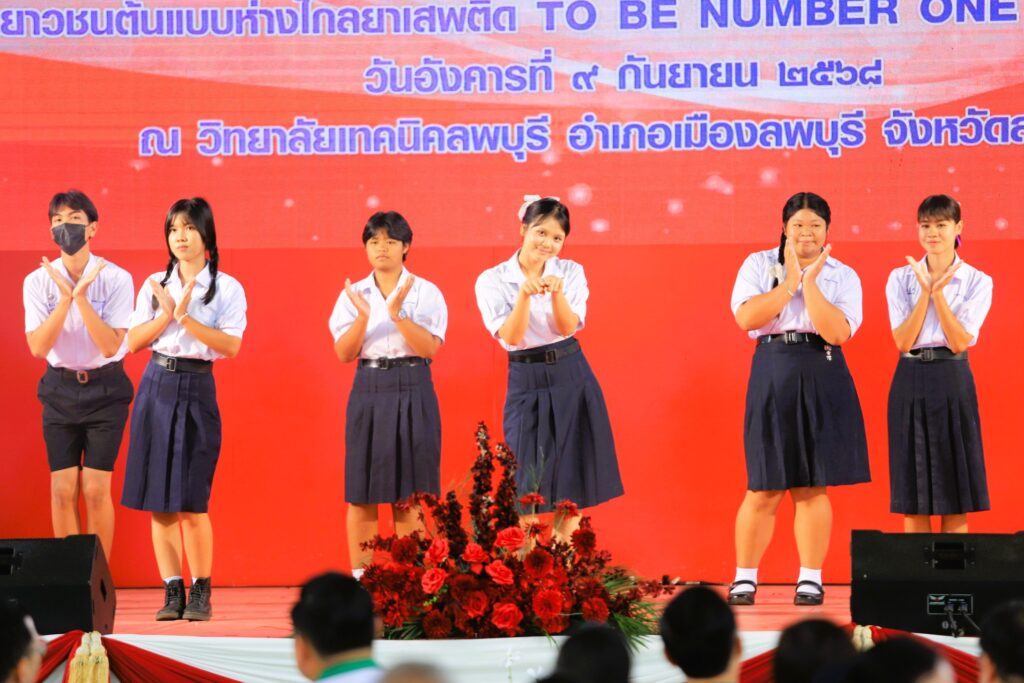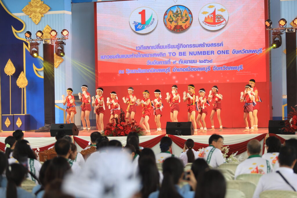 วันที่ 9 กันยายน 2568 เวลา 09.30 น. ที่ วิทยาลัยเทคนิคลพบุรี จังหวัดลพบุรี นายปรัชญา เปปะตัง รองผู้ว่าราชการจังหวัดลพบุรี เป็นประธานเปิดเวทีแลกเปลี่ยนเรียนรู้กิจกรรมสร้างสรรค์ เยาวชนต้นแบบห่างไกลยาเสพติด TO BE NUMBER ONE จังหวัดลพบุรีโดยมี นายแพทย์ปิยะเดช วลีพิทักษ์เดช นายแพทย์สาธารณสุขจังหวัดลพบุรี พร้อมด้วย หัวหน้าส่วนราชการ ผู้บริหารสำนักงานสาธารณสุขจังหวัดลพบุรี เยาวชนสมาชิก TO BE NUMBER ONE และหน่วยงานที่เกี่ยวข้องเข้าร่วม