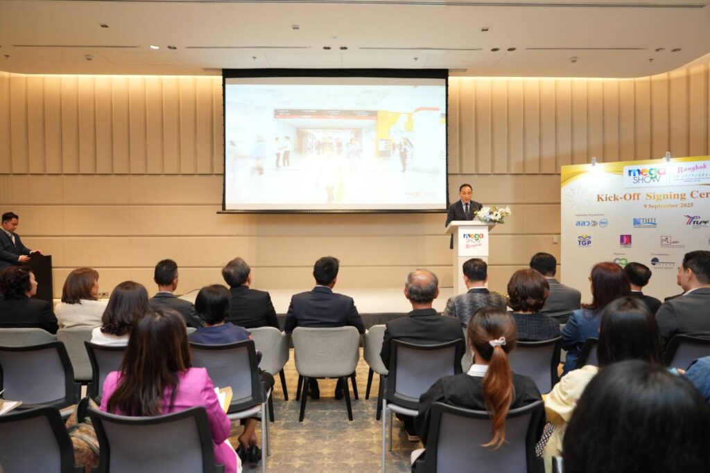เมื่อวันที่ 9 กันยายน 2568 บริษัท ComAsia Limited จำกัด เปิดตัว“Mega Show-Bangkok 2026” อย่างยิ่งใหญ่ภายใต้ชื่องาน “Kick-off Ceremony for 2026 MEGA SHOW-Bangkok” ณ ศูนย์การประชุมแห่งชาติสิริกิติ์ (QSNCC) ซึ่งเป็นการนับถอยหลังสู่มหกรรมแสดงสินค้านานาชาติ โดยจัดขึ้นระหว่างวันที่ 15–17 กรกฎาคม 2569 โดยงานนี้นับเป็นแพลตฟอร์มสำคัญที่เชื่อมโยงผู้ประกอบการไทยกับผู้ซื้อจากทั่วโลก ภายในงานแถลงข่าวได้รับเกียรติจากบุคคลสำคัญในแวดวงอุตสาหกรรมและการค้าของไทยร่วมงาน อาทิ นายสุรพล อุทินทุ ประธานเจ้าหน้าที่บริหาร ศูนย์การประชุมแห่งชาติสิริกิต์ ดร.ชาญชัย สิริเกษมเลิศ ผู้อำนวยการสถาบันพัฒนาอุตสาหกรรมสิ่งทอ (THTI) นายจิรบูลย์ วิทยสิงห์ เลขาธิการสมาพันธ์ผลิตภัณฑ์ไลฟ์สไตล์ไทย และนายสุปรีย์ ทองเพชรประธานสภาวิสาหกิจขนาดกลางและขนาดย่อมของไทย โดยได้ร่วมเสวนาในหัวข้อ “US Tax Wall: โอกาสของภาคธุรกิจไทย”