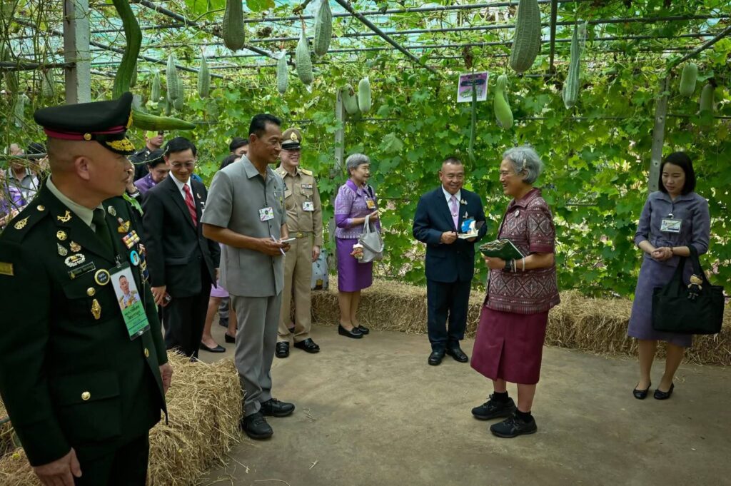 ต่อจากนั้น เสด็จพระราชดำเนินไปทอดพระเนตรความก้าวหน้าของโครงการทหารพันธุ์ดี โรงพยาบาลอานันทมหิดล ซึ่งเริ่มต้นการดำเนินงานในปี 2562 พัฒนาพื้นที่ว่างเปล่า 8 ไร่ เริ่มจากปรับปรุงดินโดยปลูกปอเทืองสลับกับใช้ปุ๋ยคอก จัดทำแปลงเกษตรที่ได้เมล็ดพันธุ์จากศูนย์พัฒนาพันธุ์พืชจักรพันธ์เพ็ญศิริ ใช้น้ำบาดาลที่ได้รับการสนับสนุนจากกรมทรัพยากรน้ำบาดาล เมื่อโครงการประสบผล ได้ขยายพื้นที่เพาะปลูกเพิ่มขึ้นอีก 4 ไร่ มีการนำเทคโนโลยีมาช่วยพัฒนากระบวนการผลิตให้มีประสิทธิภาพมากขึ้นยิ่งขึ้น จนสามารถผลิตผักและพืชผักสวนครัวได้มากกว่า 20 ชนิด