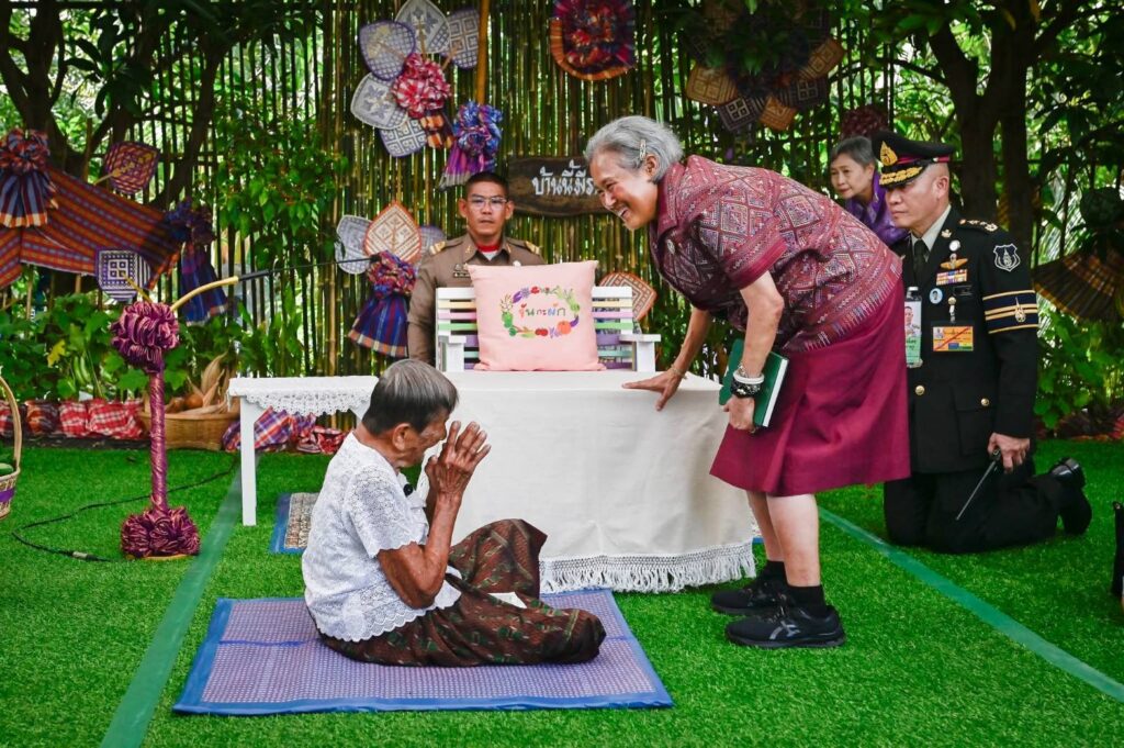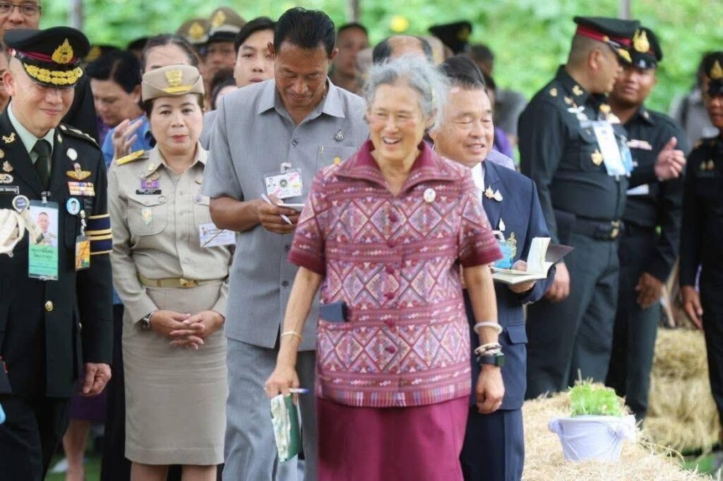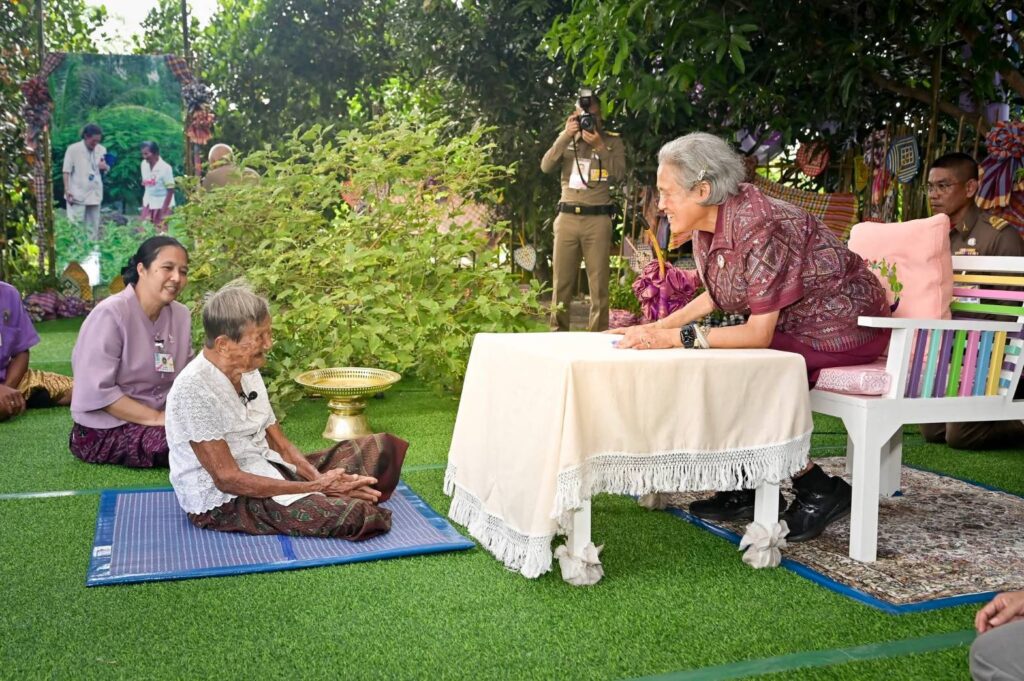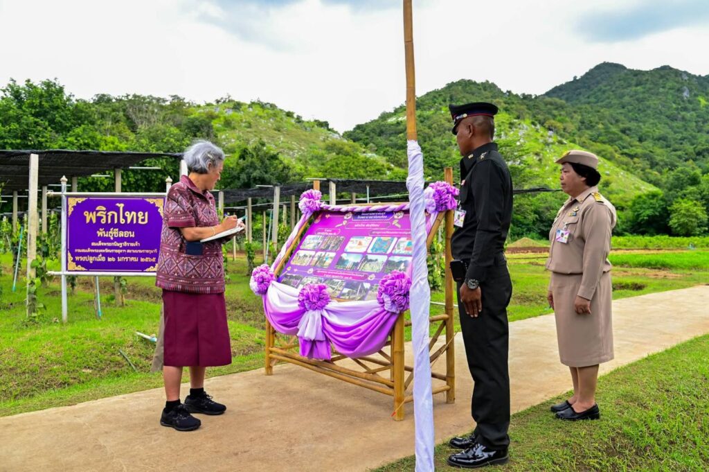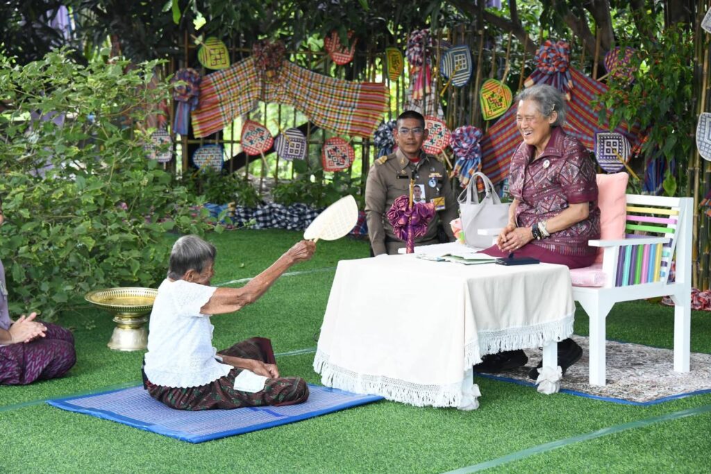 ต่อจากนั้น เสด็จพระราชดำเนินไป บ้านนางสาวจำรอง นกยิ้ม อายุ 97 ปี บ้านเลขที่ 27 บ้านท่ามะขาม หมู่ที่ 7 ตำบลโก่งธนู อำเภอเมือง จังหวัดลพบุรี เป็นสมาชิกโครงการ “บ้านนี้มีรัก ปลูกผักกินเอง” และโครงการ “ทางนี้มีผล ผู้คนรักกัน” ของศูนย์พัฒนาพันธุ์พืชจักรพันธ์เพ็ญศิริ มูลนิธิชัยพัฒนา เข้าร่วมโครงการฯ ในปี 2560 เป็นครัวเรือนต้นแบบผู้สูงอายุของ ตำบลโก่งธนู “ปลูกทุกอย่างที่กิน กินทุกอย่างที่ปลูก” เหลือแบ่งปัน พึ่งพาตนเองได้