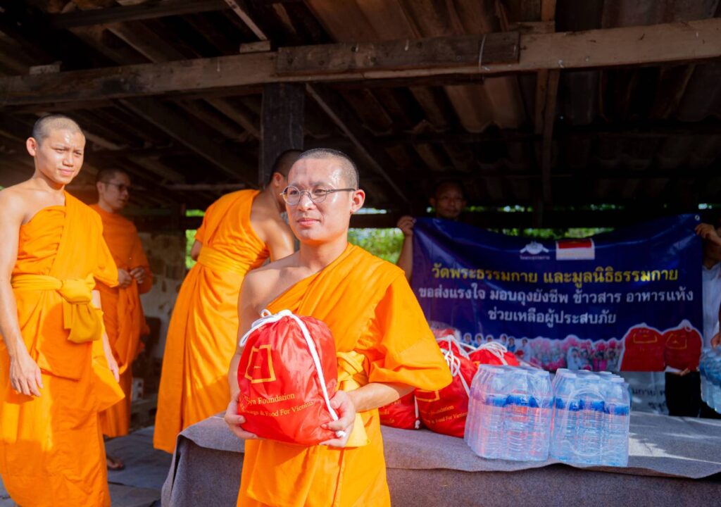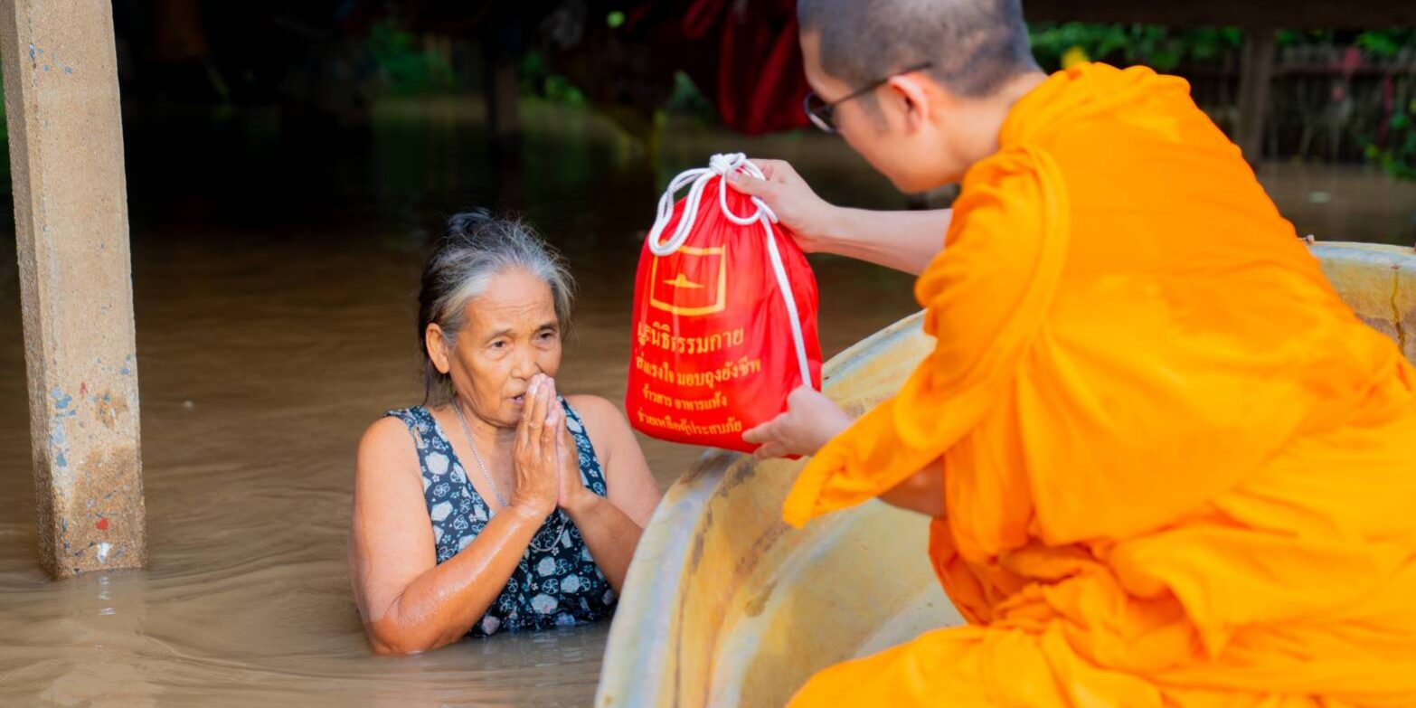 วันที่ 20 กันยายน 2568 พระมหานพพร ปุญฺญชโย ป.ธ.9 ผู้ช่วยเจ้าอาวาสวัดพระธรรมกาย จังหวัดปทุมธานี กล่าวว่า ช่วงนี้น้ำท่วมหนัก ชาวบ้านหลายร้อยครอบครัวเดือดร้อนกันไปทั่ว แต่ท่ามกลางความลำบากแบบนี้ ก็ยังมีน้ำใจดี ๆ ไหลมาไม่ขาดสาย คณะสงฆ์และมูลนิธิธรรมกายพายเรือลุยน้ำท่วม เพื่อมอบถุงยังชีพ และส่งกำลังใจให้กับพี่น้องชาวบ้านที่ติดอยู่ในพื้นที่เสี่ยงน้ำท่วมที่อยุธยา