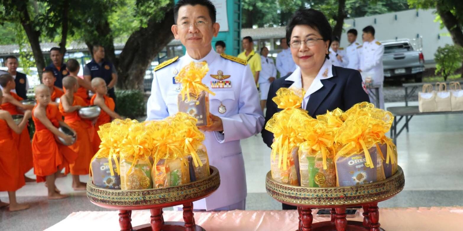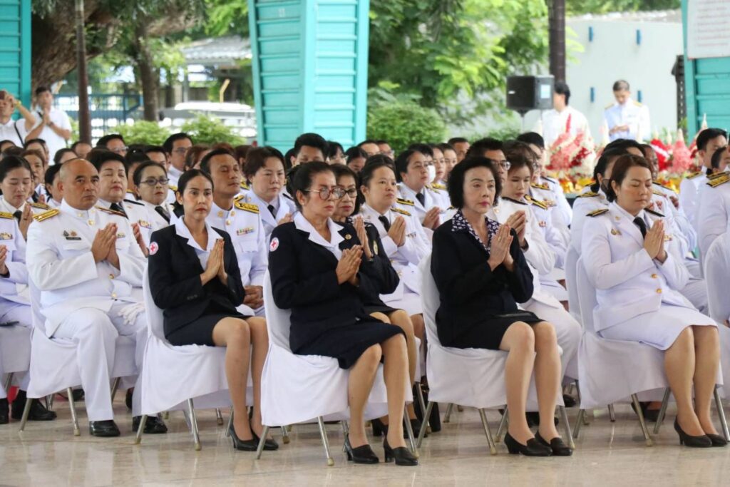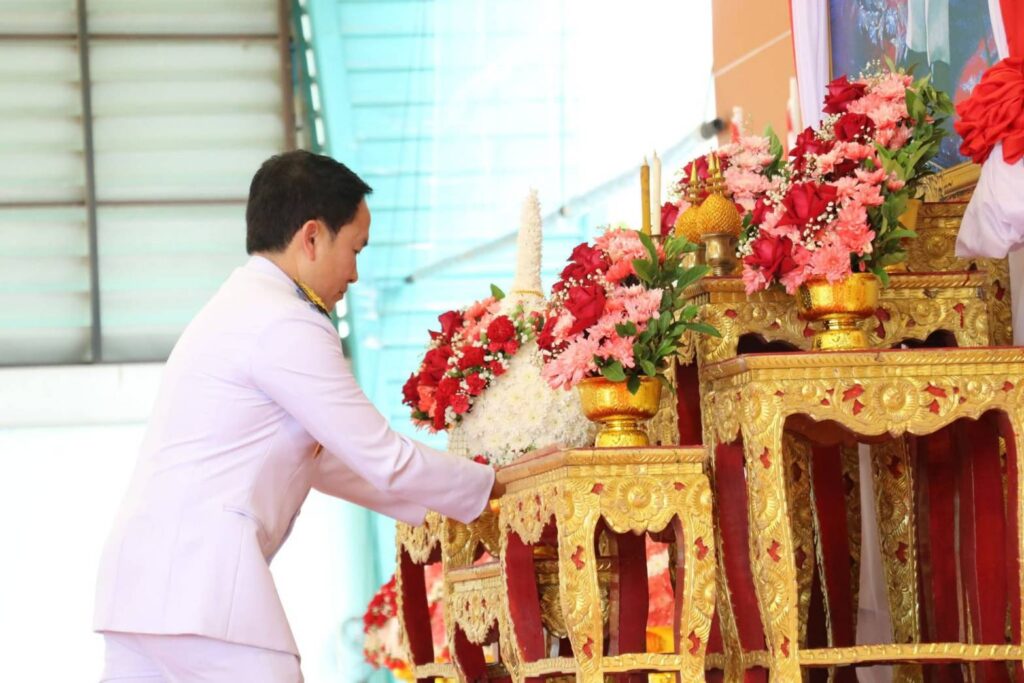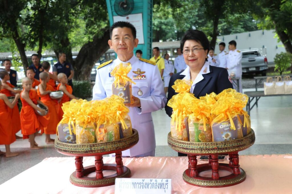 จากนั้น ผู้ว่าราชการจังหวัดสิงห์บุรี ประธานในพิธี วางพุ่มดอกไม้ถวายราชสักการะ เบื้องหน้าพระบรมฉายาลักษณ์พระบาทสมเด็จพระปรเมนทรมหาอานันทมหิดล พระอัฐมรามาธิบดินทร และนำพุทธศาสนิกชนทำบุญตักบาตรแด่พระสงฆ์และสามเณร