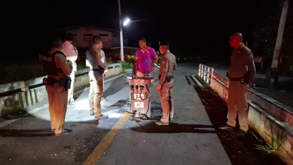 เมื่อเวลา 13.00 น. วันที่ 22 กันยายน 2568 ที่ สถานีตำรวจภูธรสามโคก ต.คลองควาย อ.สามโคก จ.ปทุมธานี พลตำรวจโท คำรณวิทย์ ธูปกระจ่าง นายก อบจ.ปทุมธานี ได้เข้าพบกับ พ.ต.อ.เทพฤทธิ์ ชาวนาวิก ผู้กำกับการสถานีตำรวจภูธรสามโคก เพื่อติดตามความคืบหน้า กรณีช่วงเช้ามืดของวันที่ 20 กันยายน ได้มีรถกระบะ ติดสัญญาณไซเรนคล้ายกับรถเจ้าหน้าที่ไฟฟ้า ขโมยหม้อแปลงไฟฟ้า บนถนนมหาลัยชินวัตร หมู่ 10 ตำบลบางเตย อำเภอสามโคก จังหวัดปทุมธานี แล้วเจ้าหน้าที่ตำรวจได้ขับตาม ระหว่างทางคนร้ายที่อยู่หลังกระบะได้โยน บันไดไม้ไผ่ เครื่องมือ ที่ใช้ก่อเหตุ ลงบนพื้นผิวถนน เพื่อไม่ให้เจ้าหน้าที่ ตำรวจ ขับติดตามพอมาถึง สะพานข้ามคลอง หน้าวัดทางยาวคนร้ายได้ ผลักหม้อแปลงลงมาขวางรถเจ้าหน้าที่ตำรวจ ซึ่งพบว่าเป็นหม้อแปลงขนาด 30 kva ใช้เพื่อจ่ายกระแสไฟฟ้าส่องสว่าง ทางสาธารณะของ อบจ.ปทุมธานี
