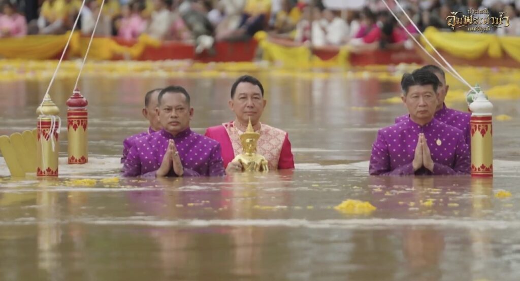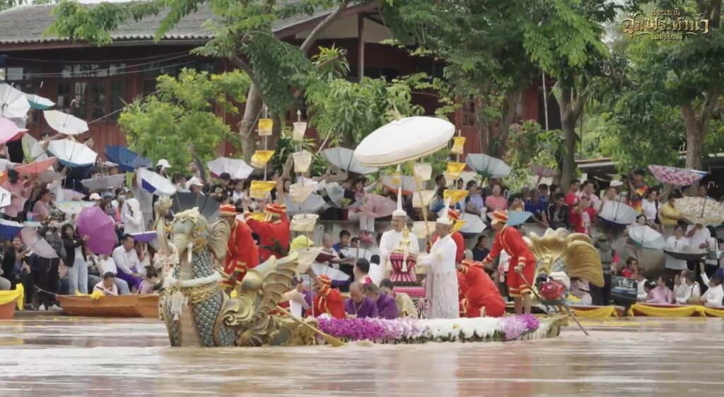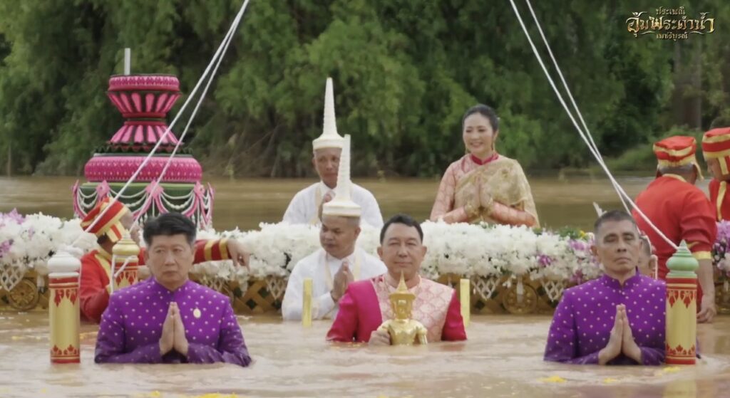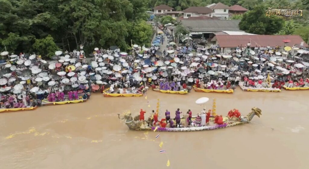 พิธีเริ่มต้นตั้งแต่เวลา 09.39 น. โดย นายศรัณยู มีทองคำ ผู้ว่าราชการจังหวัดเพชรบูรณ์ ได้อัญเชิญ องค์พระพุทธมหาธรรมราชา พระพุทธรูปศักดิ์สิทธิ์คู่บ้านคู่เมืองจากวัดไตรภูมิ มาประดิษฐานบนเรือแห่ล่องทวนน้ำมาสู่ท่าน้ำวัดโบสถ์ชนะมาร เมื่อถึงเวลา 10.09 น. ได้ประกอบ พิธีอุ้มพระดำน้ำ โดยมีผู้ว่าราชการจังหวัด พร้อมคณะกรมการเมืองทั้ง 4 ได้แก่ ฝ่ายเวียง วัง คลัง และนา ประกอบพิธีอุ้มพระลงดำน้ำทั้งหมด 6 ครั้ง สลับทิศระหว่างทิศใต้และทิศเหนือ ตามขนบธรรมเนียมโบราณ