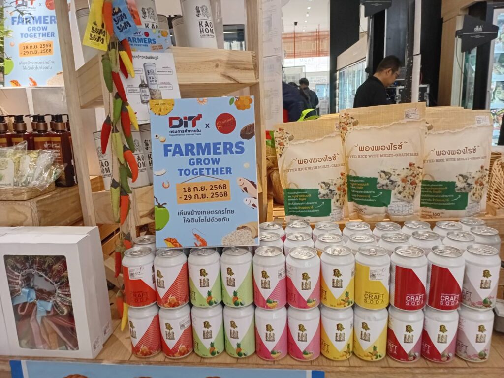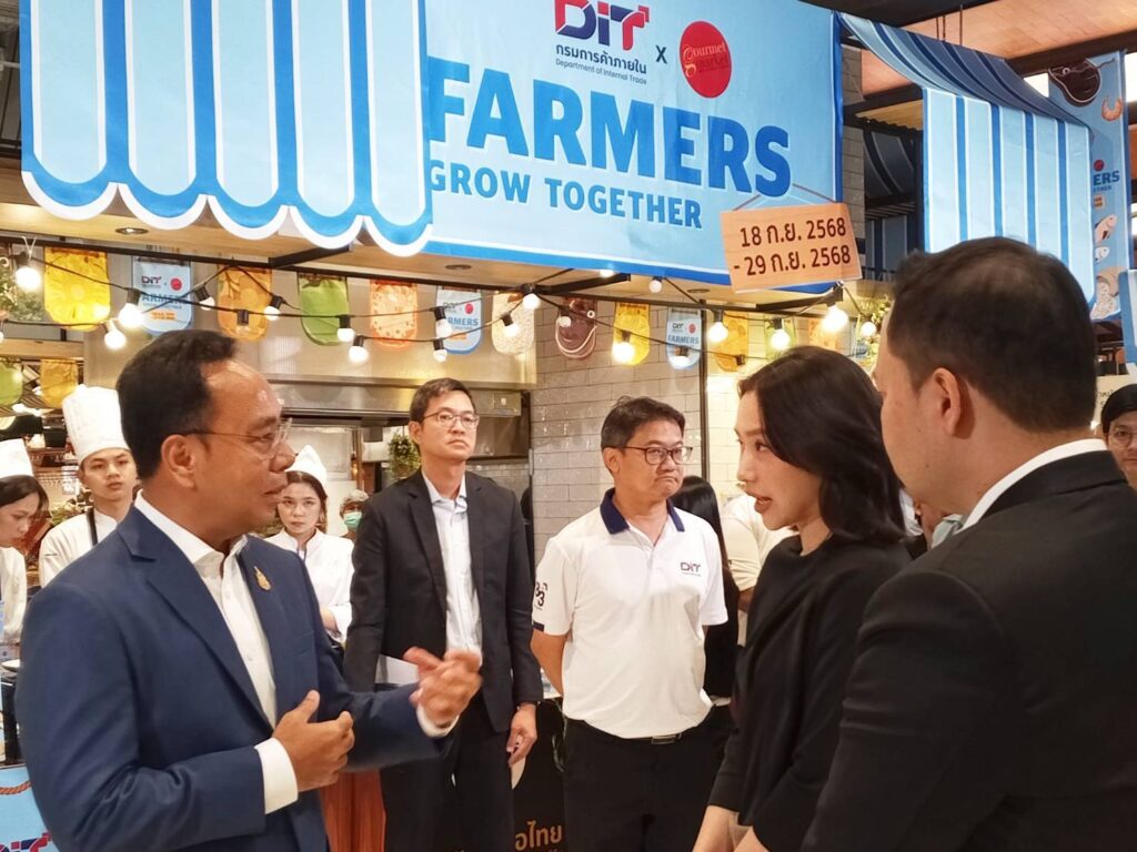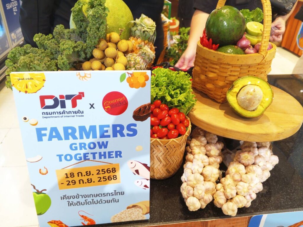 กรมการค้าภายใน (DIT) ร่วมกับ กูร์เมต์มาร์เก็ต จัดงาน “DIT X Gourmet Market Farmers Grow Together” เคียงข้างเกษตรกรไทยไปด้วยกัน จัดขึ้นตั้งแต่วันที่ 18–29 กันยายน 2568 ณ กูร์เมต์ มาร์เก็ต ชั้น G สาขาพารากอน เพื่อเป็นพื้นที่สนับสนุนเกษตรกรไทยให้มีช่องทางการจำหน่ายสินค้าคุณภาพได้โดยตรงถึงมือผู้บริโภค และเพื่อนำไปต่อยอดพัฒนาสินค้า