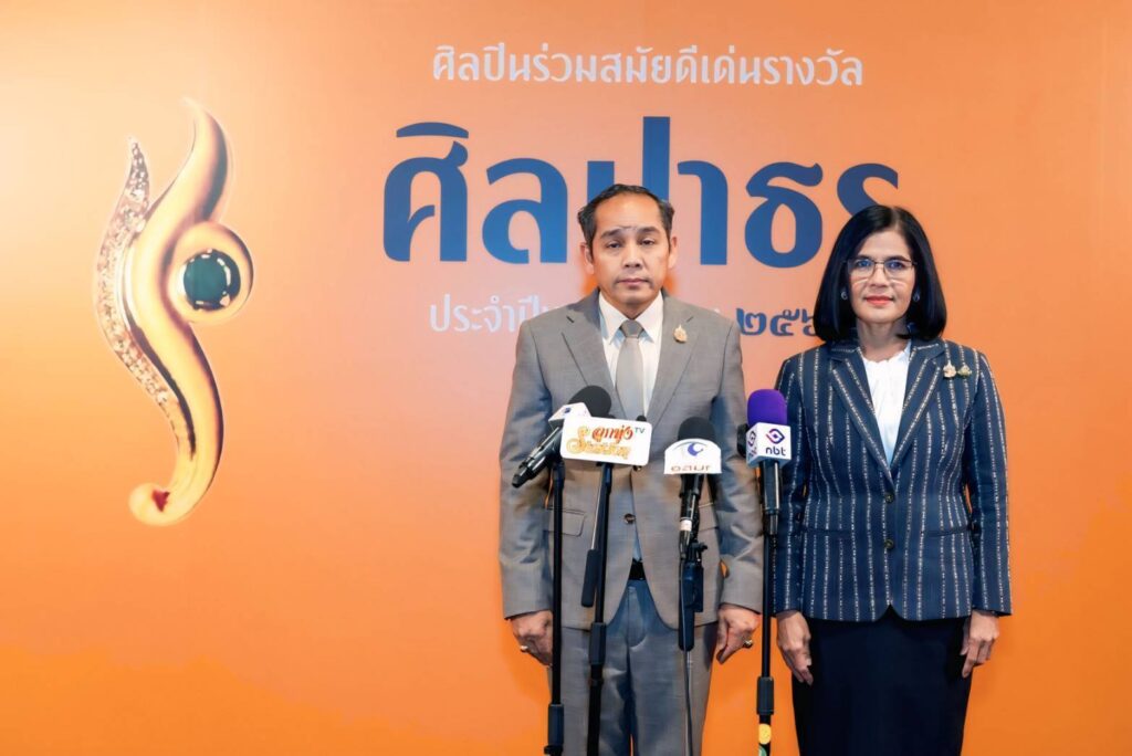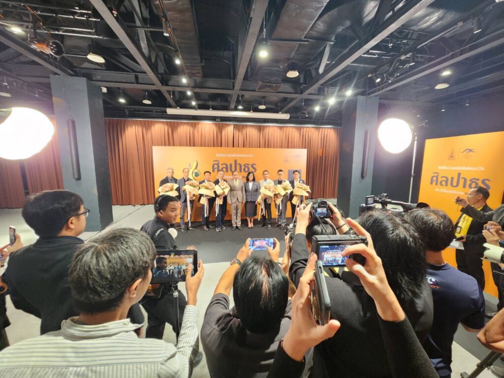 วันพุธที่ 24 กันยายน 2568 เวลา 14.00 น. นายสุชาติ ตันเจริญ รัฐมนตรีประจำสำนักนายกรัฐมนตรี รักษาราชการแทนรัฐมนตรีว่าการกระทรวงวัฒนธรรม มอบหมายให้นายประสพ เรียงเงิน ปลัดกระทรวงวัฒนธรรม เป็นประธานงานแถลงข่าวโครงการยกย่องเชิดชูศิลปินร่วมสมัยดีเด่น รางวัล “ศิลปาธร” ประจำปีงบประมาณ พ.ศ. 2568 โดยมีนางเกษร กำเหนิดเพ็ชร ผู้อำนวยการสำนักงานศิลปวัฒนธรรมร่วมสมัย (สศร.) นางสาวลิปิการ์ กำลังชัย รองอธิบดีกรมส่งเสริมวัฒนธรรม นายธีทัต พิมพา รองอธิบดีกรมการศาสนา ผู้แทนอธิบดีกรมศิลปากร ผู้บริหารสศร. ศิลปินร่วมสมัยดีเด่น รางวัล “ศิลปาธร” ปี พ.ศ. 2568 และผู้แทนศิลปินฯ คณะกรรมการคัดสรรศิลปินฯ คณะกรรมการอำนวยการโครงการฯ ข้าราชการ เจ้าหน้าที่สศร.และสื่อมวลชน เข้าร่วม ณ ห้องแกลเลอรี 2 – 3 ชั้น G อาคารหอศิลป์แห่งชาติ กระทรวงวัฒนธรรม