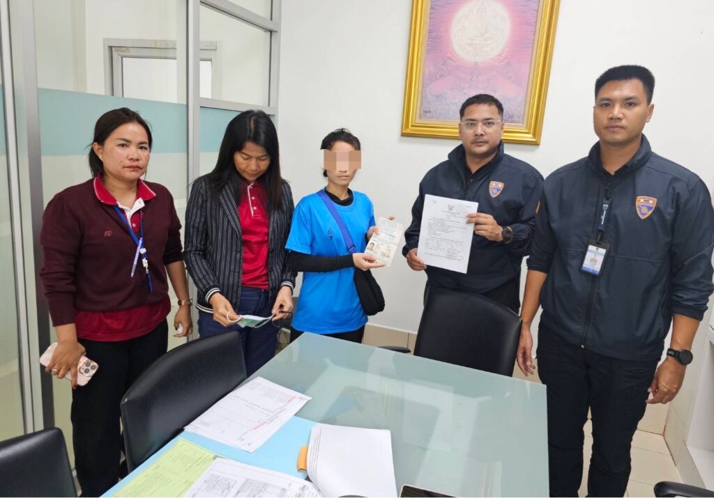 พร้อมกำลังเจ้าหน้าที่สืบสวน จับกุม น.ส. ยิน ซันหญิงชาวเมียนมา เป็นตัวสั่งการ ในกลุ่มขบวนการขนแรงงานต่างด้าวผิดกฎหมาย ตามหมายจับศาลจังหวัดชุมพร