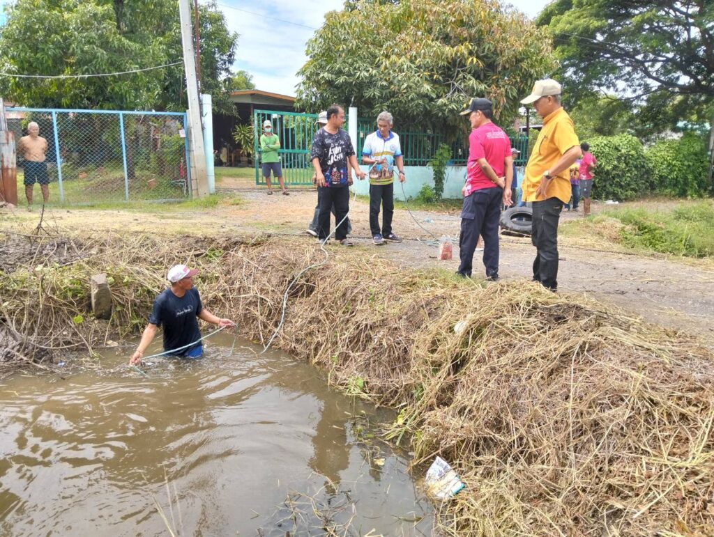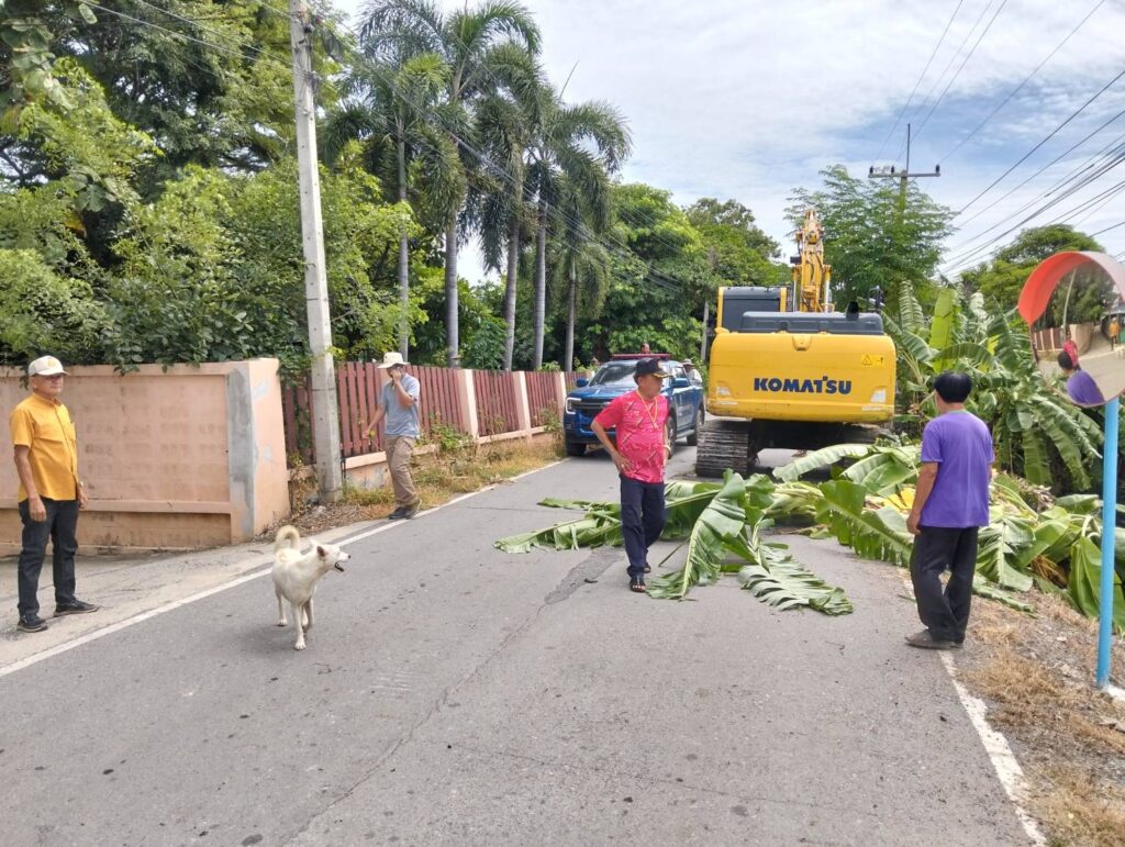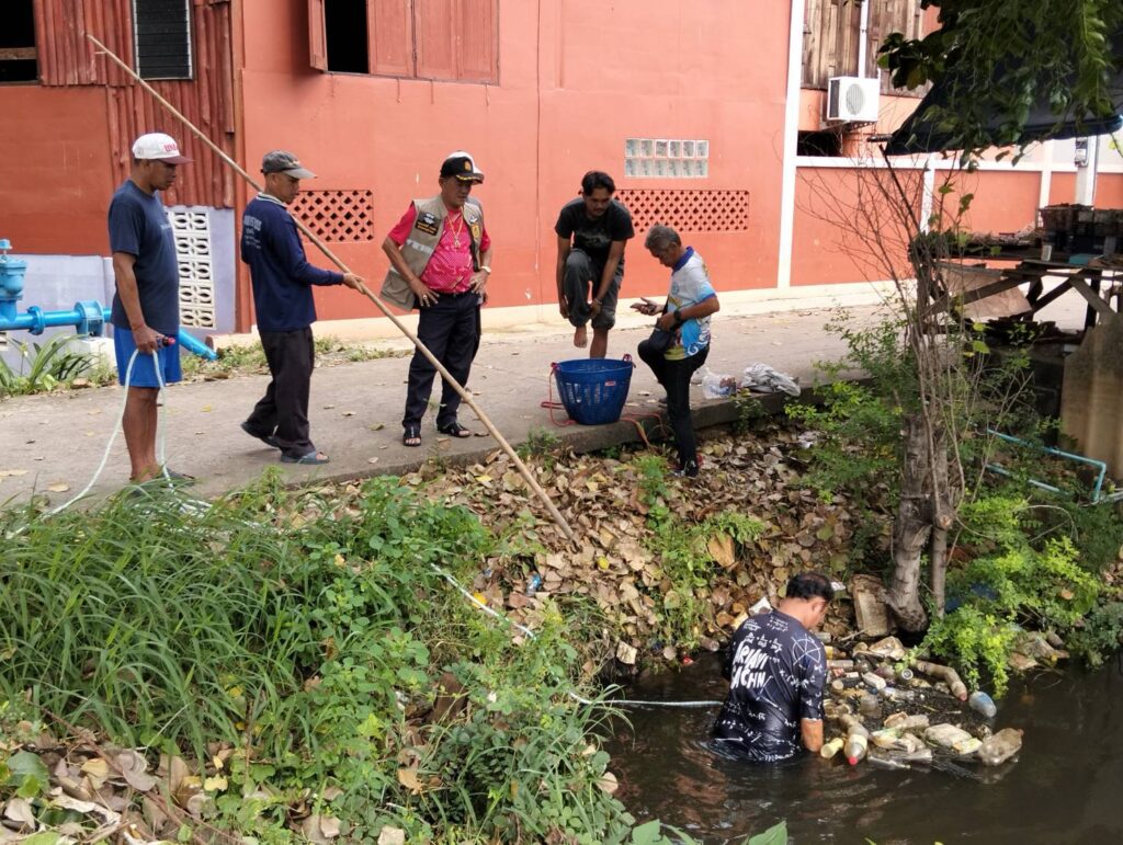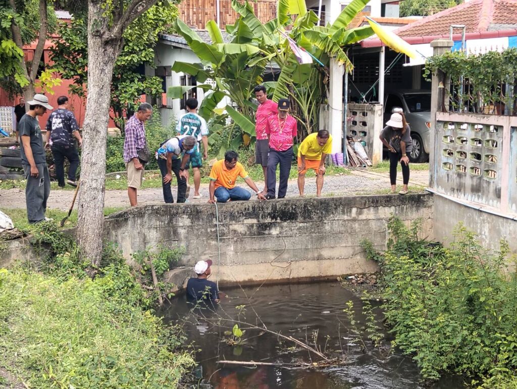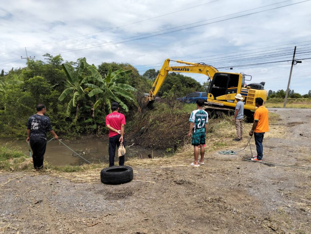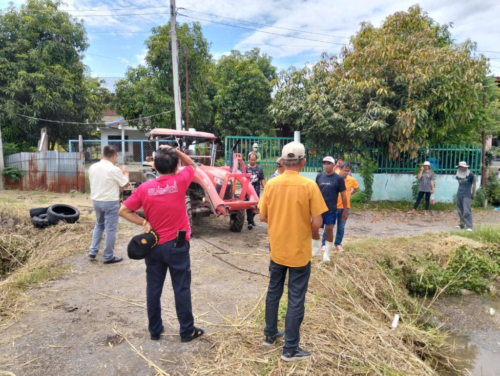 พันตำรวจเอก(พิเศษ)ธนศักดิ์ปานแย้ม นายกองค์การบริหารส่วนตำบลหนองทรายขาว พร้อมด้วยนางสาวชญดา จันทร์กลิ่น กำนันตำบลหนองทรายขาว ,คณะผู้บริหาร,สมาชิกองค์การบริหารส่วนตำบลหมู่ที่ 3 สระเตยน้อย ,หมู่ที่ 4 บ้านสระเตยใหญ่ ,เจ้าหน้าที่องค์การบริหารส่วนตำบลหนองทรายขาว ,พี่น้องชาวบ้านสระเตยใหญ่, สระเตยน้อย ลงพื้นที่หมู่ที่ 4 บ้านสระเตยใหญ่ พร้อมด้วยรถแม็คโคร ตักเศษกิ่งไม้ต้นหญ้าต่างๆ ที่ขวางทางน้ำตั้งแต่ซุ้มประตูวัดสระเตยใหญ่ถึงทางข้ามสวนลุงต๋อย และนำรถไถดึงเลนออกจากท่อจำนวน 3 ช่วง ที่อุดตันออกจากท่อระบายน้ำ