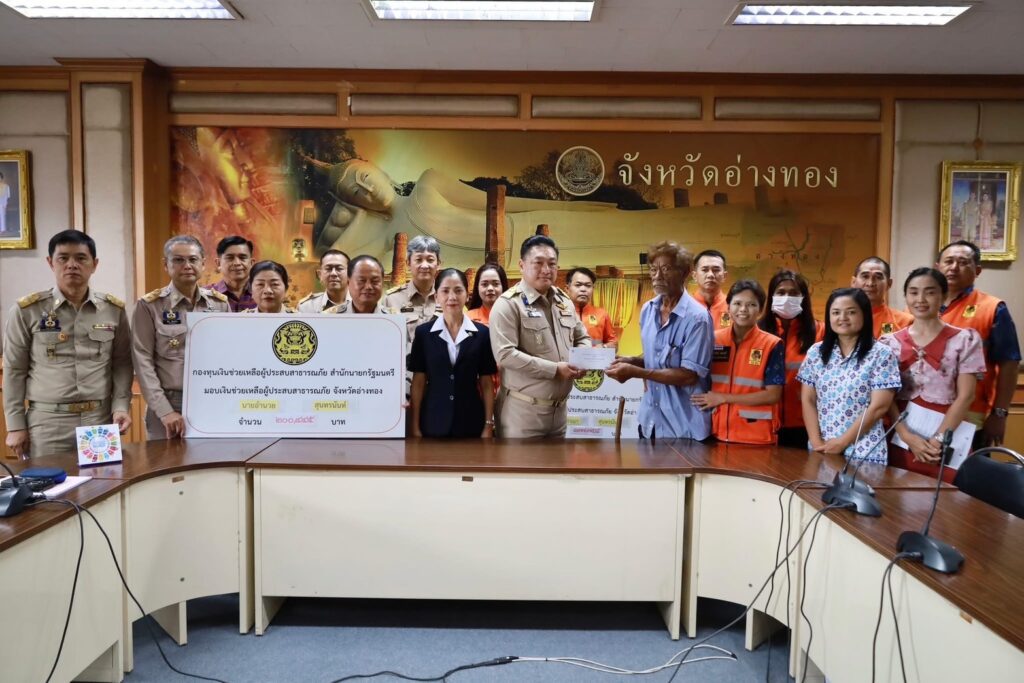 วันที่ 25 กันยายน 2568 เวลา 13.00 น. ณ ห้องประชุมโพธิ์ทอง ชั้น 2 ศาลากลางจังหวัดอ่างทอง นายชวนินทร์ วงศ์สถิตจิรกาล ผู้ว่าราชการจังหวัดอ่างทอง เป็นประธานในพิธีมอบเงินกองทุนเงินช่วยเหลือผู้ประสบสาธารณภัย สำนักนายกรัฐมนตรี ให้แก่ครอบครัวผู้ประสบอัคคีภัย พร้อมด้วยนางศุทธิกานต์ วงศ์สถิตจิรกาล นายกเหล่ากาชาดจังหวัดอ่างทอง หัวหน้าสำนักงานป้องกันและบรรเทาสาธารณภัยจังหวัดอ่างทอง ปลัดองค์การบริหารส่วนจังหวัดอ่างทอง และเจ้าหน้าที่ที่เกี่ยวข้อง เข้าร่วม