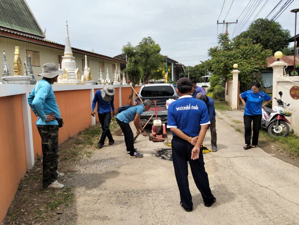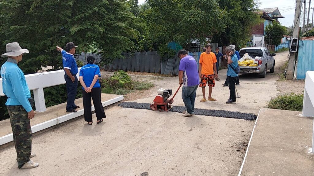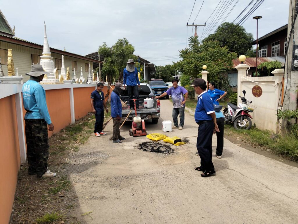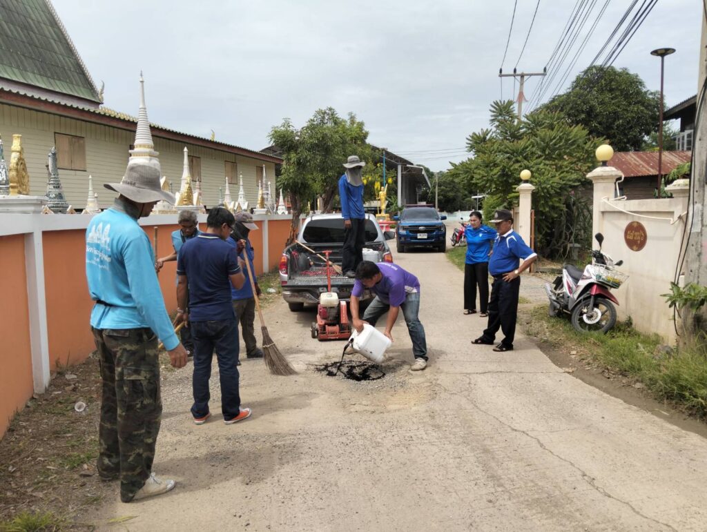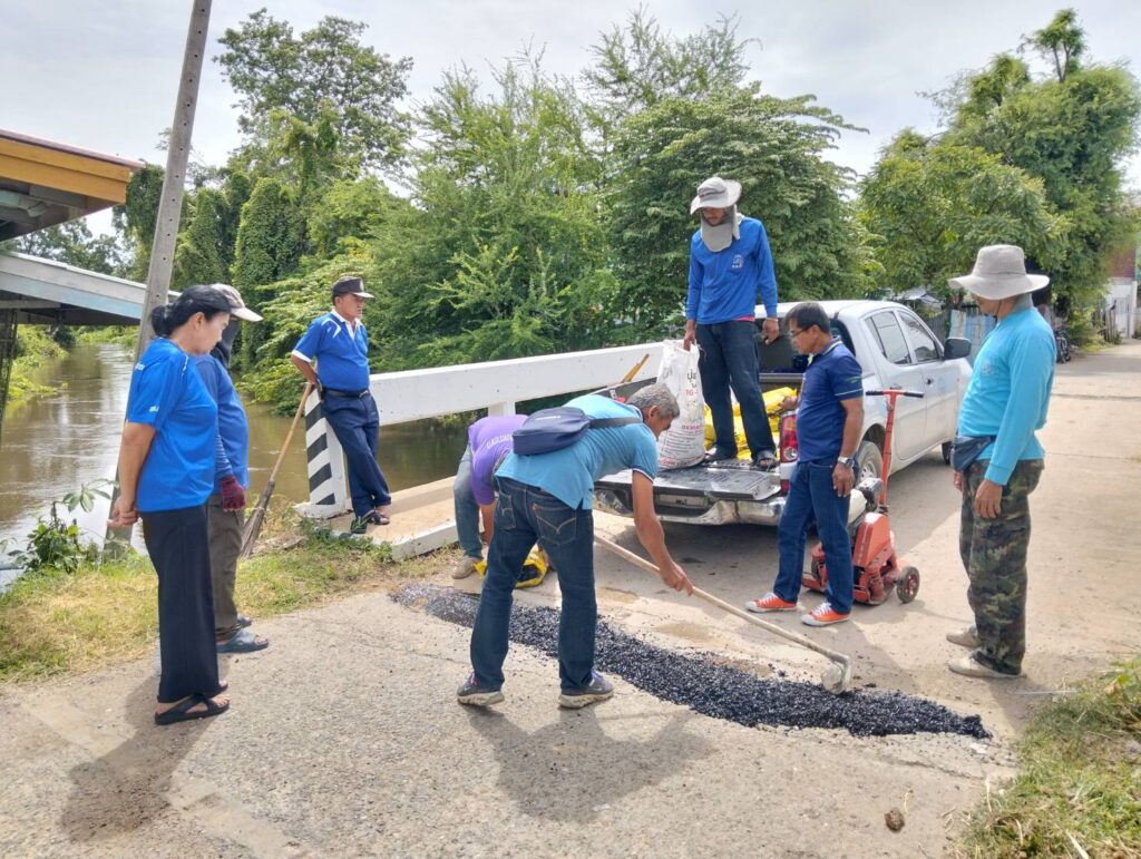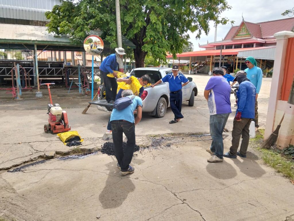 ลงพื้นที่ทำการซ่อมแซมถนนที่เป็นหลุม และรอยแตกราว