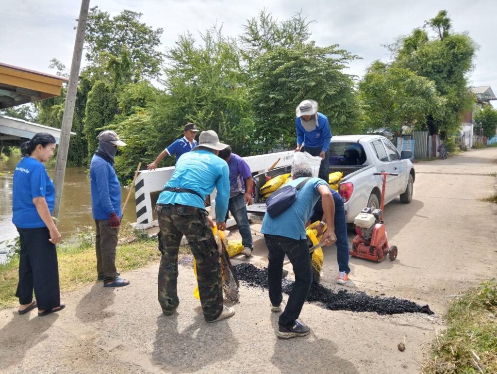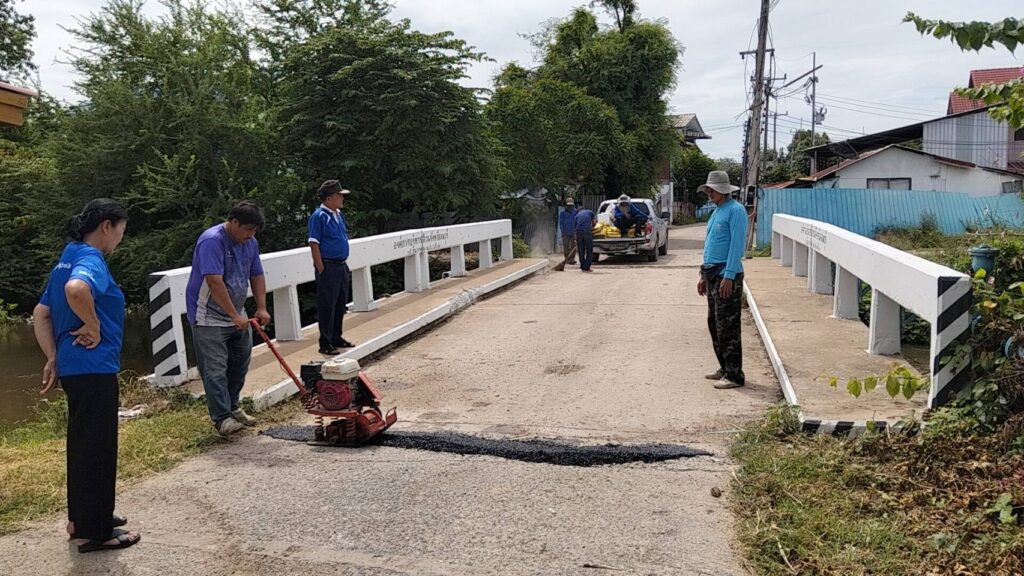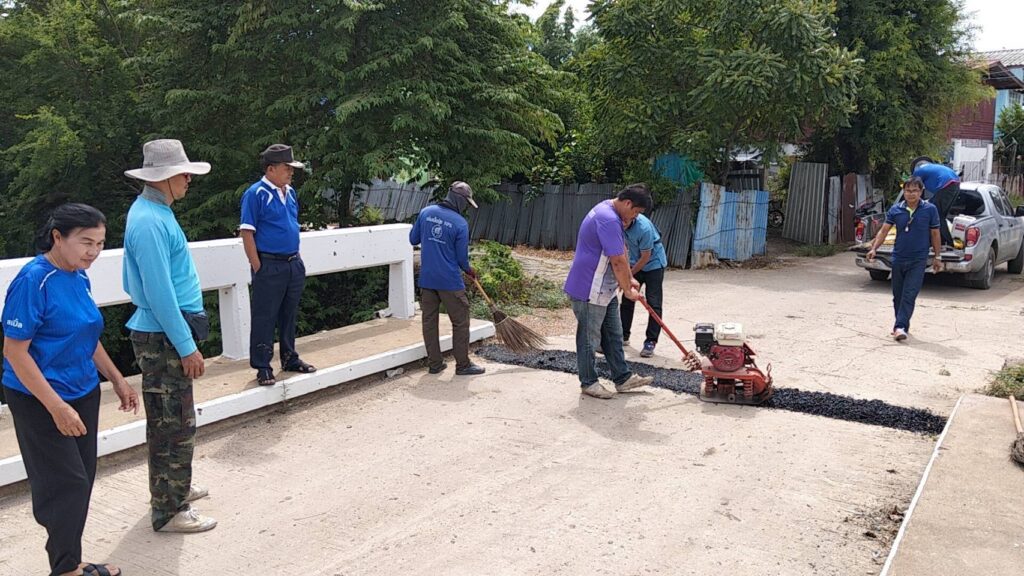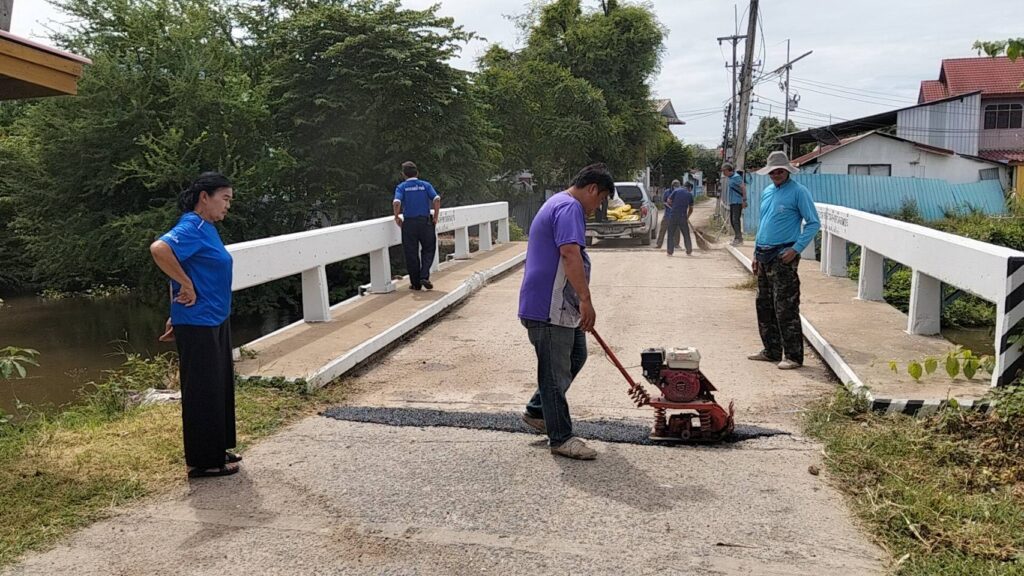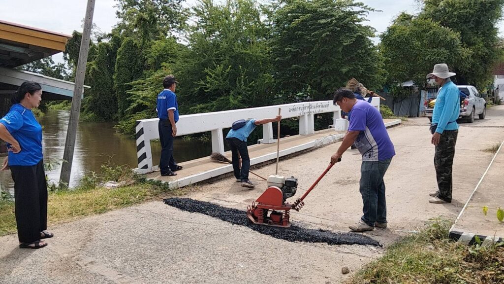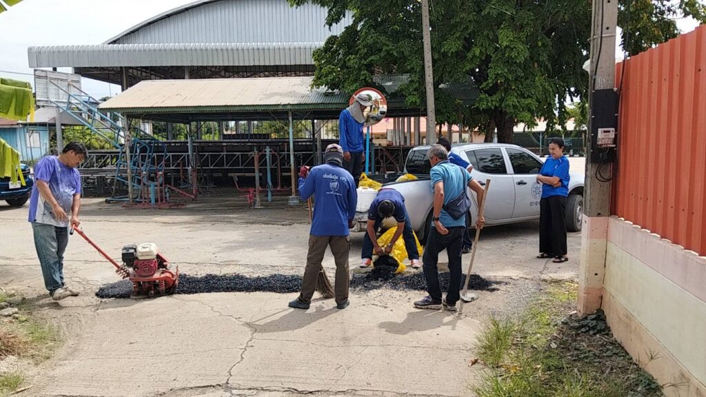 ลงพื้นที่ทำการซ่อมแซมถนนที่เป็นหลุม และรอยแตกราว