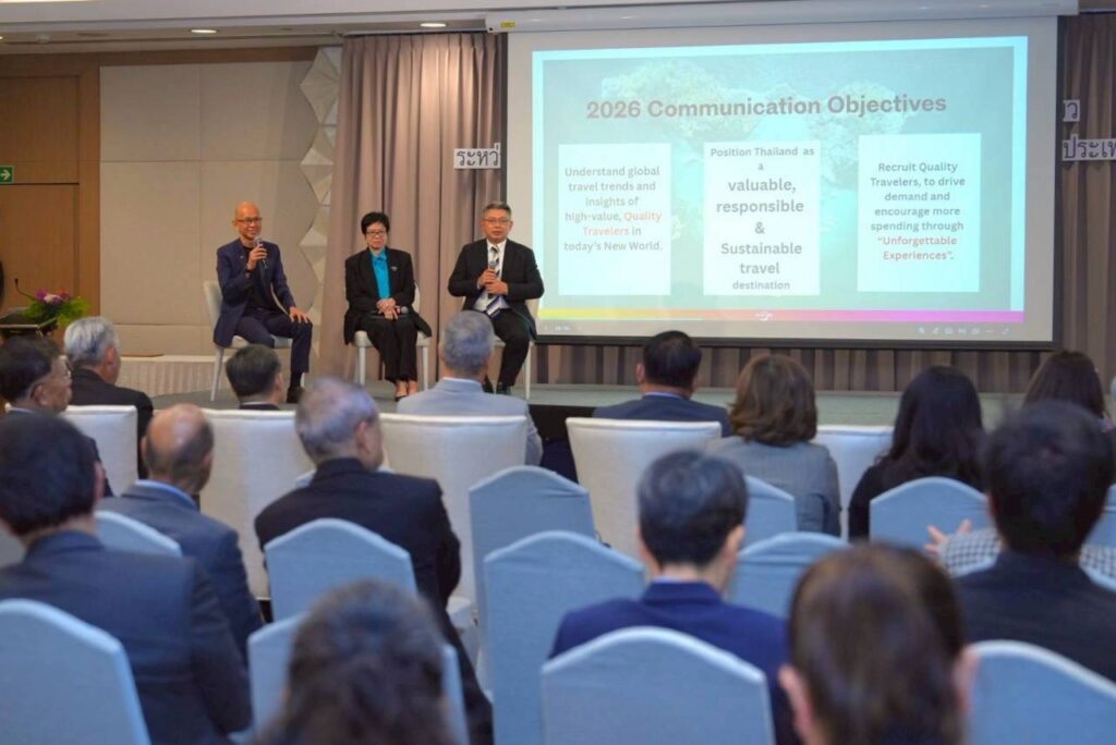 สำหรับงานแถลงนโยบายและแผนเพื่อส่งเสริมอุตสาหกรรมท่องเที่ยวที่จัดขึ้น ณ โรงแรม Avani Ratchada Bangkok Hotel ประกอบด้วย การแถลงดัชนีความเชื่อมั่นผู้ประกอบการท่องเที่ยวไทยและอัปเดตสถานการณ์ท่องเที่ยวไตรมาส 3/2568 โดย รศ.ผกากรอง เทพรักษ์ มหาวิทยาลัยเทคโนโลยีราชมงคลศรีวิชัย การแถลงแนวทางและนโยบายของการท่องเที่ยวแห่งประเทศไทยเพื่อส่งเสริมอุตสาหกรรมการท่องเที่ยว โดย นายนิธี สีแพร รองผู้ว่าการด้านสื่อสารการตลาด ททท. ร่วมนำเสนอทิศทางการสื่อสารการตลาดในประเทศและตลาดต่างประเทศ และ นางสาวรุ่ง กาญจนวิโรจน์ ผู้อำนวยการฝ่ายวางแผน ททท. ร่วมนำเสนอแนวทางและนโยบายของการท่องเที่ยวแห่งประเทศไทย พร้อมด้วยเสวนา “ก้าวต่อไปของอุตสาหกรรมท่องเที่ยวกับรัฐบาลไทย” โดย นายชัย อรุณานนท์ชัย ประธานสภาอุตสาหกรรมท่องเที่ยวแห่งประเทศไทย นายเกรียงไกร เธียรนุกุล ประธานสภาอุตสาหกรรมแห่งประเทศไทย ดร. พจน์ อร่ามวัฒนานนท์ ประธานสภาหอการค้าแห่งประเทศไทย