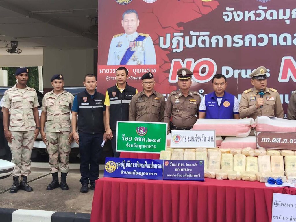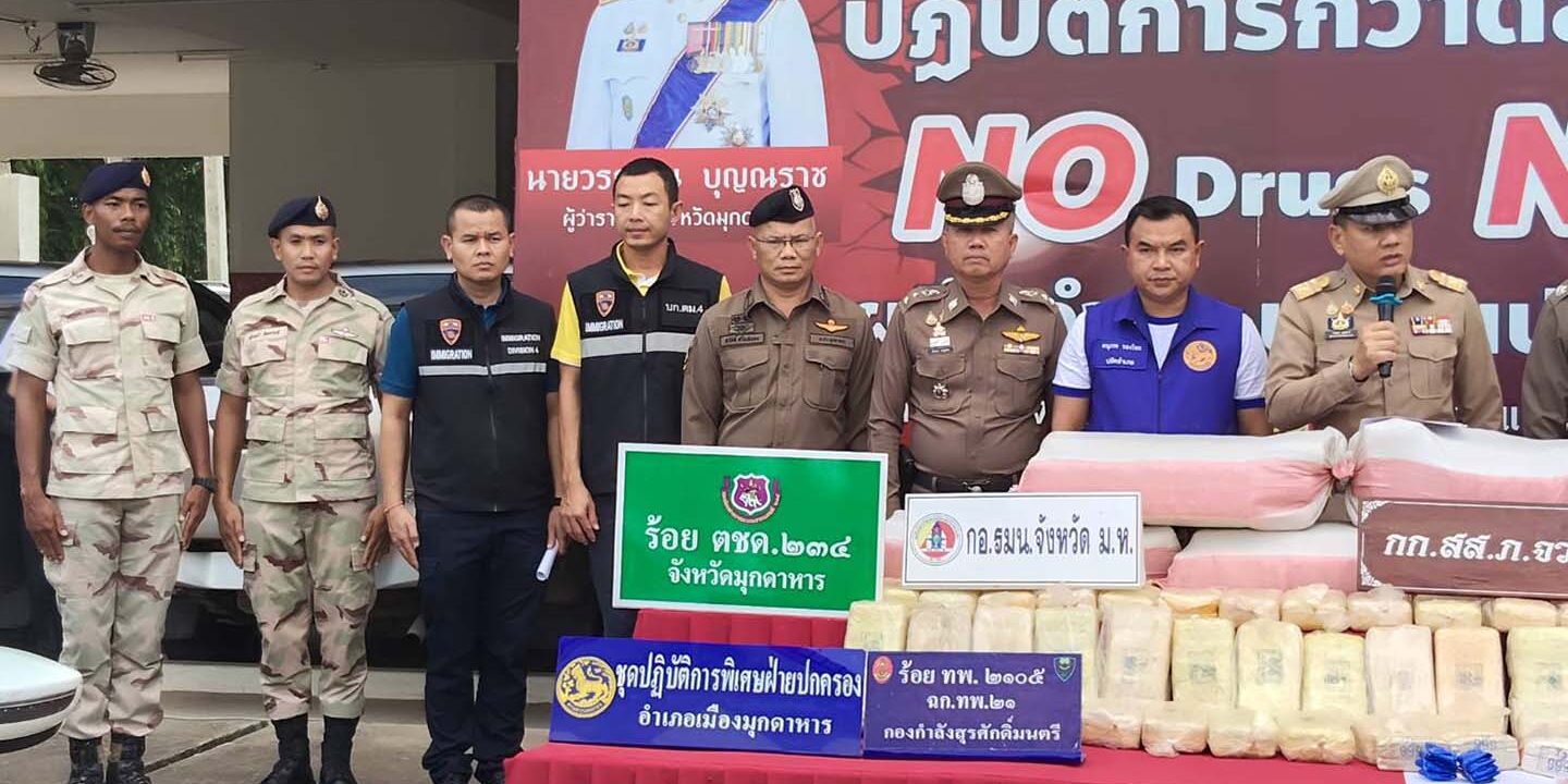 มุกดาหาร – ตำรวจภูธรจังหวัดมุกดาหาร จับกุมยาเสพติดให้โทษประเภท 1 (ยาบ้า) 2,000,000 เม็ด พร้อมผู้ต้องหา 3 คน สารภาพได้ค่าจ้างจำนวน 100,000 บาท เพื่อไปส่งที่จังหวัดสระบุรี รายสำคัญปฏิบัติการสกัดกั้นและปราบปรามยาเสพติด ในพื้นที่ชายแดน ตามนโยบายรัฐบาล สำนักงานตำรวจแห่งชาติ และตำรวจภูธรภาค 4 “Seal Stop Safe ” “No Drugs No Dealers” และ จุดก้าวสกัดจับ P4-Spider Web