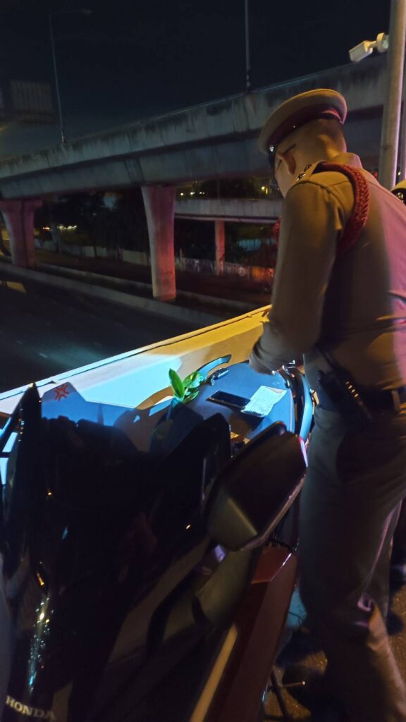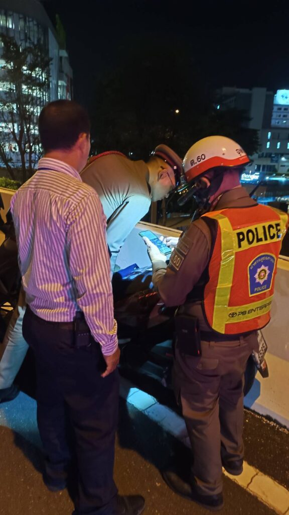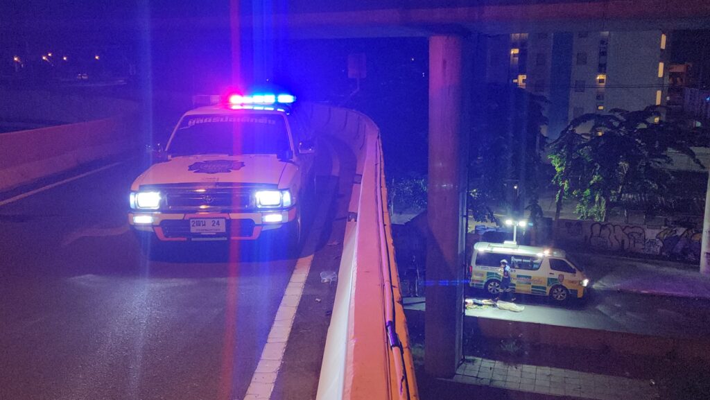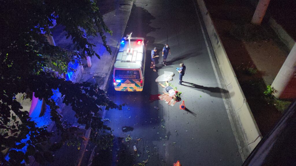 เมื่อเวลา 03.00 น. วันที่ 28 กันยายน 2568 ร.ต.ท.วิทวัส ม่วงโพธิ์เงิน ร้อยเวรสอบสวน สภ.ประตูน้ำจุฬาลงกรณ์ ได้รับแจ้งเกิดรเหตุถจักรยานยนต์เสียหลัก ชนราวสะพานต่างระดับหน้าศูนย์การค้าฟิวเจอร์พาร์ครังสิต ร่างกระเด็นร่วงกระแทกพื้น หลังได้รับแจ้งจึงประสานเจ้าหน้าที่ป่อเต็กตึ๊งเข้าตรวจสอบที่เกิดเหตุ
