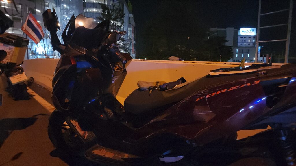 ที่เกิดเหตุอยู่บนสะพานต่างระดับมุ่งหน้าเข้า ศูนย์การค้าฟิวเจอร์พาร์ครังสิต พบ รถจักรยานยนต์ ฮอนด้า Forza350 สีนำตาลดำ หมายเลขทะเบียน 5 ขผ 8585 กทม จอดอยู่บนสะพาน บริเวณด้านซ้ายของรถ มีรอยชนพังยับ และ ขอบสะพานต่างระดับมุ่งหน้าเข้า ศูนย์การค้าฟิวเจอร์พาร์ครังสิต มีรอยขูดเป็นทางยาว ด้านล่างสะพานต่างระดับมุ่งหน้าเข้าศูนย์การค้าฟิวเจอร์พาร์ครังสิต พบศพนายประวัติ ป้องกัน อายุ 42 ปี ที่อยู่ 29/3 หมู่ที่ 6 ต.สวนพริกไทย อ.เมืองปทุมธานี จ.ปทุมธานี นอนคว่ำจมกองเลือดอยู่และที่ตัวมีกิ่งไม้และเถาวัลย์พันอยู่ที่ตัว ในกระเป๋าผู้ตายพบบัตรประชาชน และ ใบขับขี่ ส่วนที่รถจักรยานยนต์ พบโทรศัพท์มือถือ 2 เครื่อง ร.ต.ท.วิทวัส ม่วงโพธิ์เงิน ร้อยเวรสอบสวน สภ.ประตูน้ำจุฬาลงกรณ์ ได้เก็บทั้งหมดเอาไว้เป็นหลักฐาน