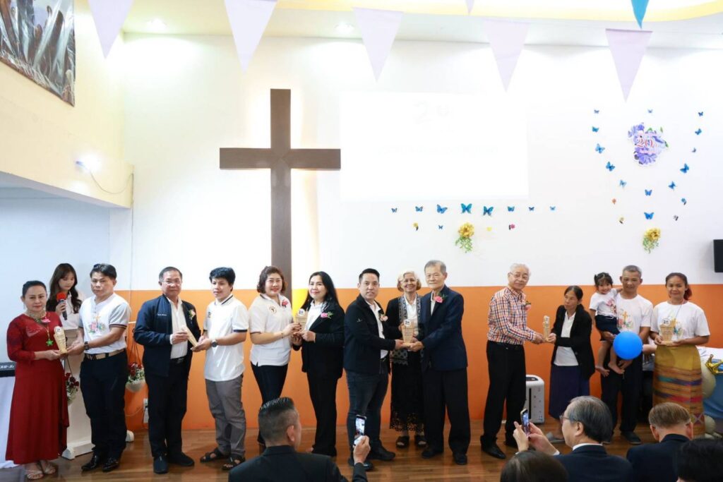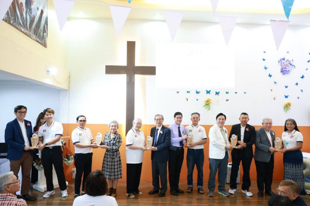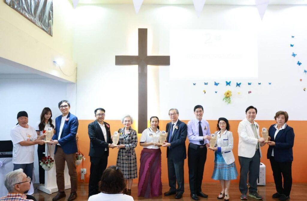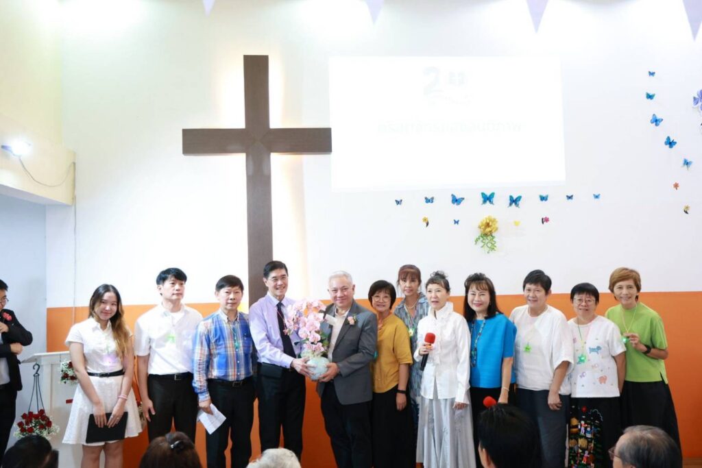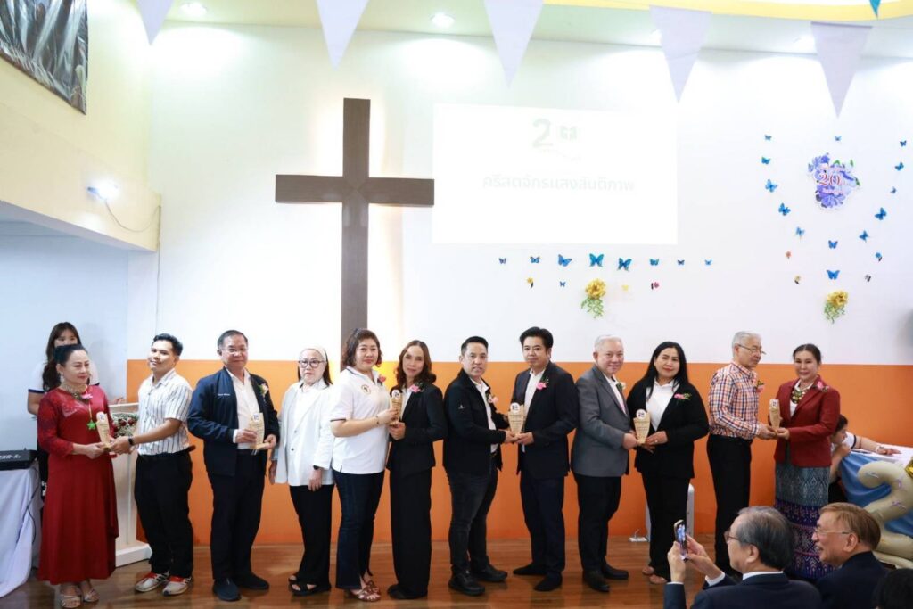 โดยมี อ.สุธี เตชะรักษ์พงศ์ ประธานกรรมการ และคณะกรรมการ สมาชิกผู้รับใช้ร่วมให้การต้อนรับ พร้อมกันมมีมน.โซวัน โล ประธานคริสตจักรภาคที่ 25,อ.อรรถสิทธิ์ ชำนาญเอื้อ ศิษยาภิบาลคริสตจักรกระแสพรพระรามห้า,ประธานกรรมการประสานงานคริสตจักรโปรเตสแตนท์ จังหวัดนนทบุรี,ศจ.ดร.อภิชาติ พูลศักดิ์วรสาร ศิษยาภิบาลอาวุโส คริสตจักรไมตรีจิต,อาจารย์พูนสุข เศรษฐโสภณกุล ศษยาภิบาลอาวุโส และที่ ปรึกษาเครือข่ายคริสตจักรแสงสว่าง,อ.สุเมธ เตชะรักษ์พงศ์ ประธาน CBMC ประเทศไทย ร่วมสาส์น แสดงความยินดี และอธิษฐานขอพรพระเจ้าทรงนำ คริสตจักรแสงสันติภาพ ก้าวสู่ปีต่อๆไป ด้วยการเกิดผลมากยิ่งขึ้นเป็นพระพรต่อชุมชนและเป็นคริสตจักร ที่เป็นแบบอย่างแก่คริสตจักรอื่นๆ เพื่อให้พระนามของพระเจ้าได้รับการถวายเกียรติอย่างสูงสุด