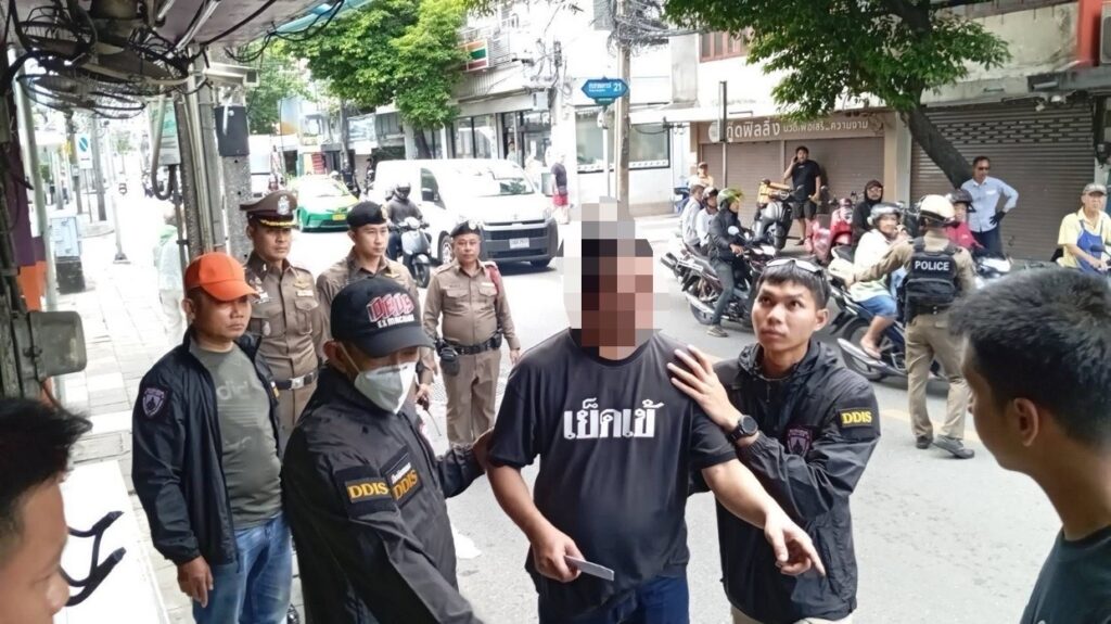 พฤติการณ์กล่าวคือ วันที่ 2 ต.ค.2568 เวลาประมาณ 03.06 น. พ.ต.ต.วรณัฐ วงค์คำ สว.(สอบสวน) สน.ดินแดง ได้รับแจ้งจากศูนย์วิทยุ สน.ดินแดง ว่ามีเหตุชายวัย 51 ปี ถูกคนร้ายใช้อาวุธมีดแทงได้รับบาดเจ็บสาหัส เหตุเกิดที่บริเวณ ปากซอยประชาสงเคราะห์ 21 ถ.ประชาสงเคราะห์ แขวงดินแดง เขตดินแดง กรุงเทพฯ จึงรายงานผู้บังคับบัญชาเพื่อทราบตามลำดับชั้น และประสานฝ่ายสืบสวน และเจ้าหน้าที่ตำรวจสายตรวจ ร่วมตรวจสถานที่เกิดเหตุ เมื่อไปถึงสถานที่เกิดเหตุ พบร่างนายเสนีย์ (สงวนนามสกุล) ผู้บาดเจ็บนอนหงายท้องจมกองเลือดอยู่บริเวณพื้นผิวถนน ลักษณะหายใจรวยริน จากการตรวจสอบเบื้องต้น พบว่า ผู้บาดเจ็บมีบาดแผลฉกรรจ์ถูกแทงเข้าที่บริเวณหน้าท้องด้านซ้าย จำนวน 2 แผล จึงประสานกู้ภัยนำตัวส่งโรงพยาบาลราชวิถี และทราบว่าผู้บาดเจ็บเสียชีวิตในเวลาต่อมา