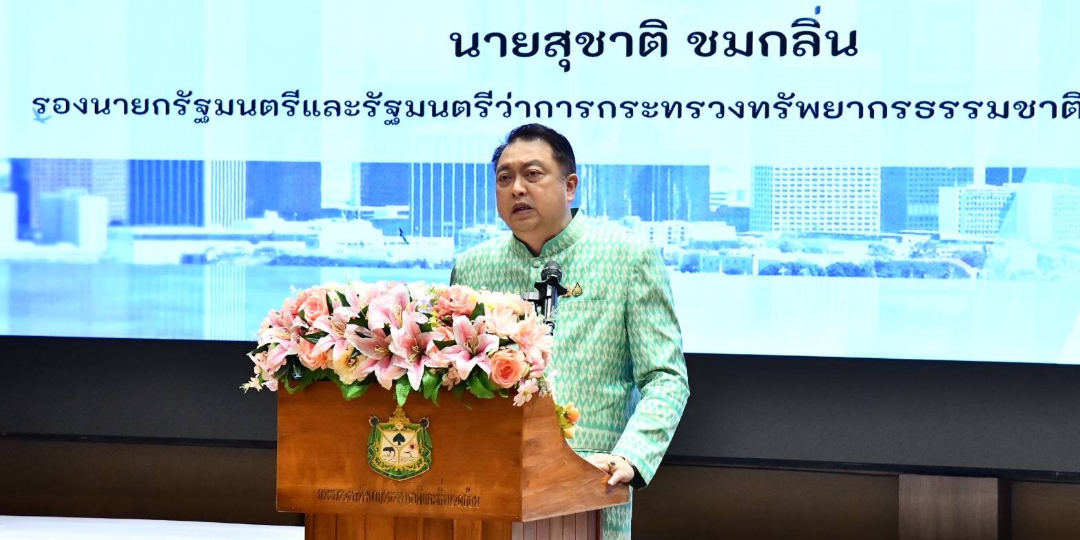 วันทึ่ 3 ตุลาคม 2568 เวลา 08.30 น. นายสุชาติ ชมกลิ่น รองนายกรัฐมนตรีและรัฐมนตรีว่าการกระทรวงทรัพยากรธรรมชาติและสิ่งแวดล้อม พร้อมด้วย ดร.ชญานันท์ ภักดีจิตต์ ปลัดกระทรวงทรัพยากรธรรมชาติและสิ่งแวดล้อม นำคณะผู้บริหาร ข้าราชการ พนักงาน และเจ้าหน้าที่ ร่วมสักการะพระพุทธสยัมภู พระพุทธรูปประจำกระทรวงฯ และศาลพระภูมิเจ้าที่ เนื่องในวันคล้ายวันสถาปนากระทรวงทรัพยากรธรรมชาติและสิ่งแวดล้อม (ทส.) ครบรอบ 23 ปี พร้อมจัดพิธีเจริญพระพุทธมนต์เพื่อความเป็นสิริมงคลในการปฏิบัติหน้าที่ และเสริมพลังใจให้แก่บุคลากรในสังกัดกระทรวงฯ ในการปกป้อง ดูแล และฟื้นฟูทรัพยากรธรรมชาติและสิ่งแวดล้อมของประเทศ