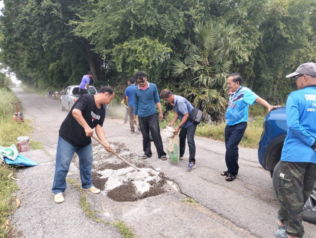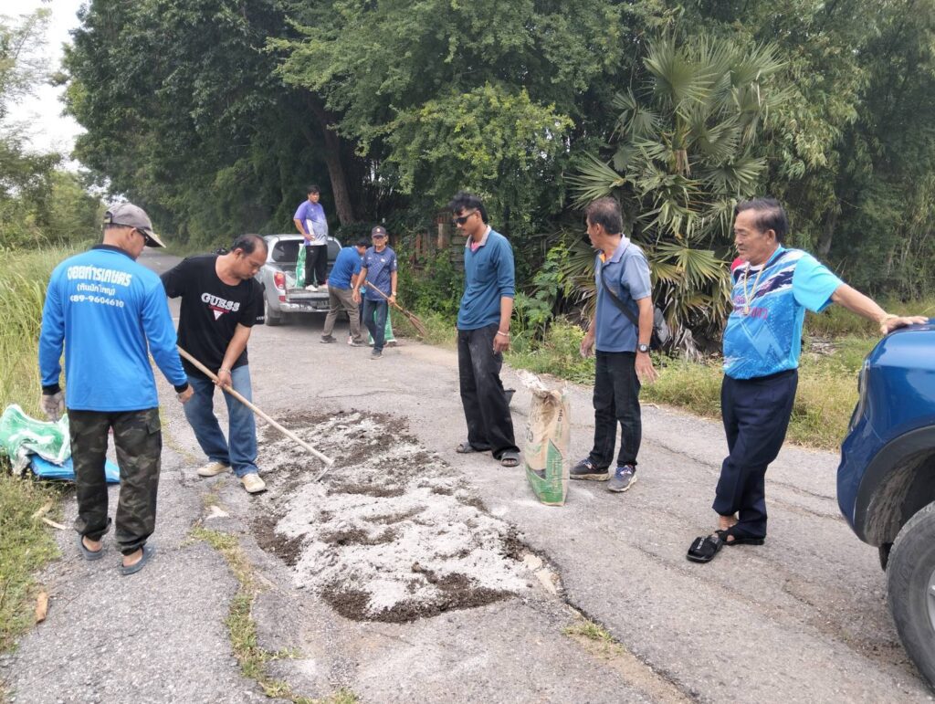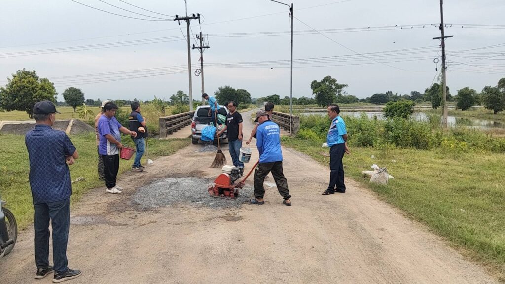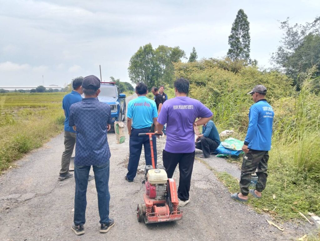 นายกองค์การบริหารส่วนตำบลหนองทรายขาว อำเภอบ้านหมี่ จังหวัดลพบุรี พร้อมด้วยคณะท่านบริหาร และเจ้าหน้าที่กองช่าง อบต.หนองทรายขาว ลงพื้นที่ทำการซ่อมแซมถนนเส้นทางไปโรงสูบสะพานขาว (สะพานเก่าหนองทรายขาว) ซึ่งเป็นหลุมขนาดใหญ่จำนวนหลายจุด