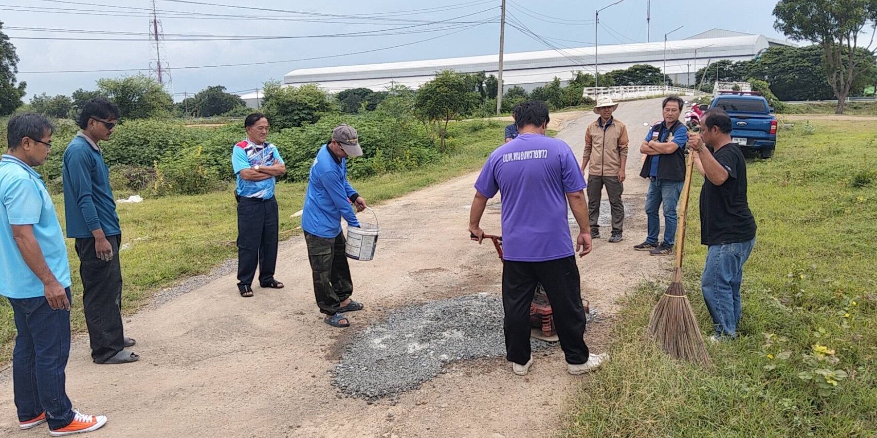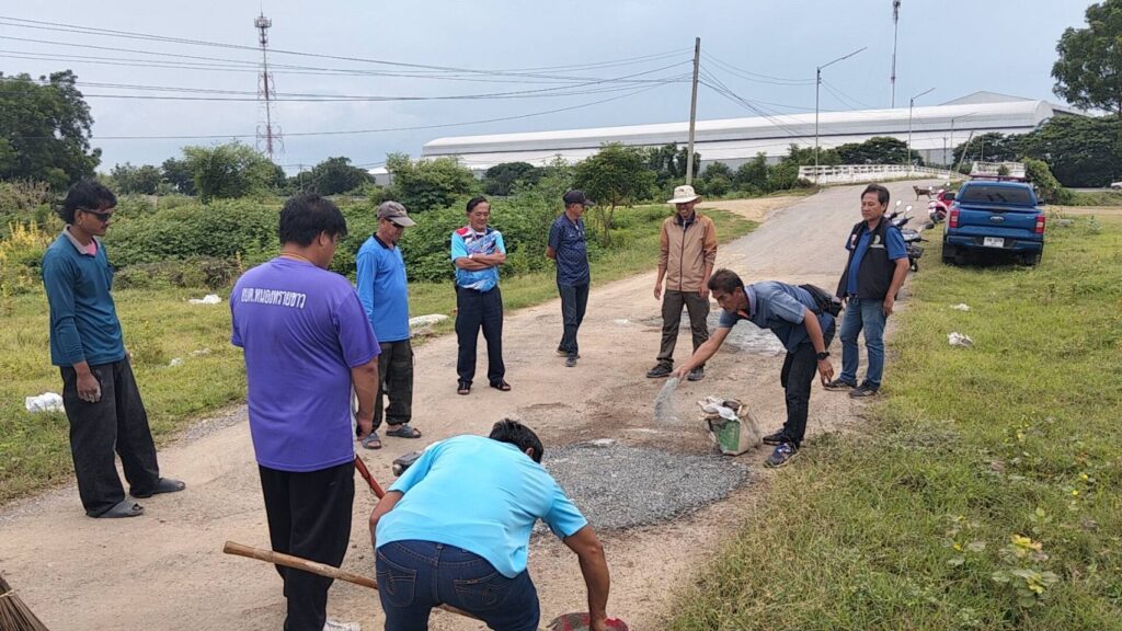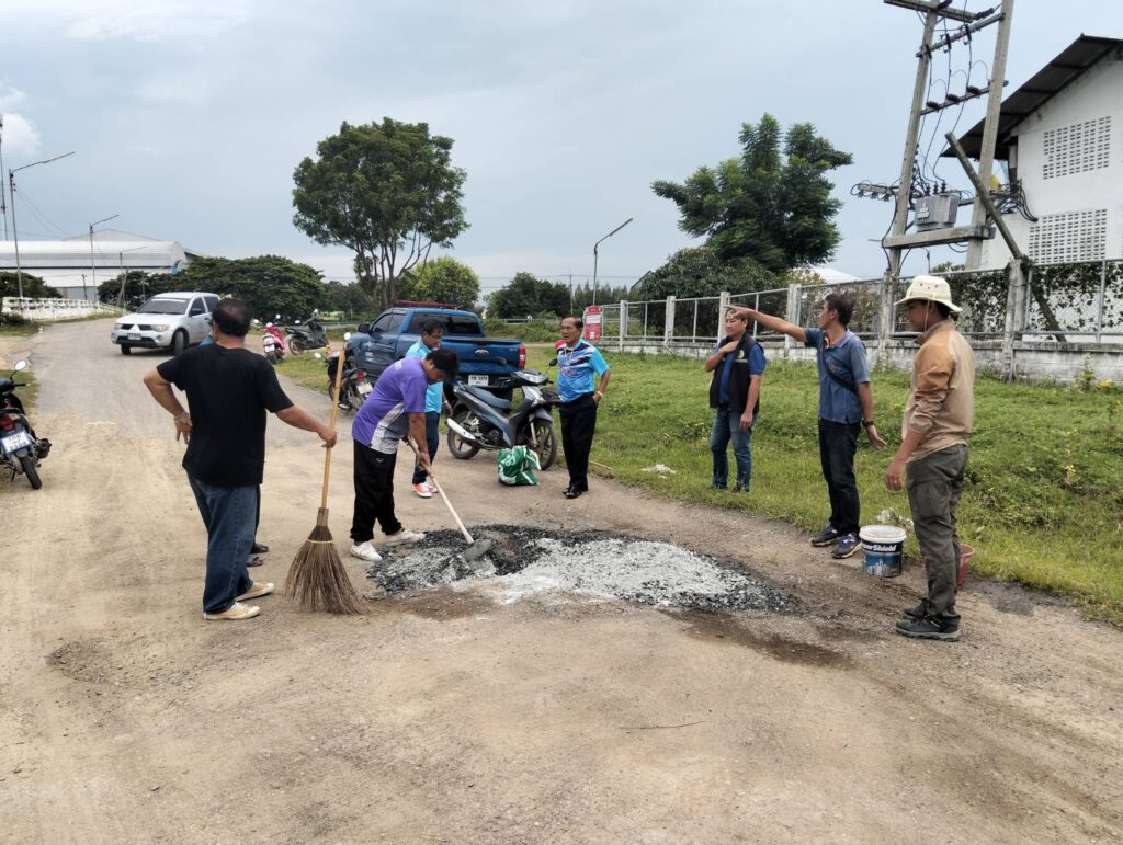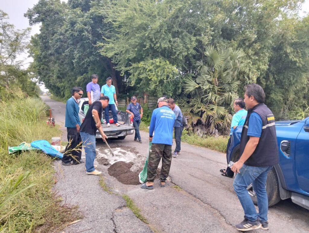 นายกองค์การบริหารส่วนตำบลหนองทรายขาว อำเภอบ้านหมี่ จังหวัดลพบุรี พร้อมด้วยคณะท่านบริหาร และเจ้าหน้าที่กองช่าง อบต.หนองทรายขาว ลงพื้นที่ทำการซ่อมแซมถนนเส้นทางไปโรงสูบสะพานขาว (สะพานเก่าหนองทรายขาว) ซึ่งเป็นหลุมขนาดใหญ่จำนวนหลายจุด