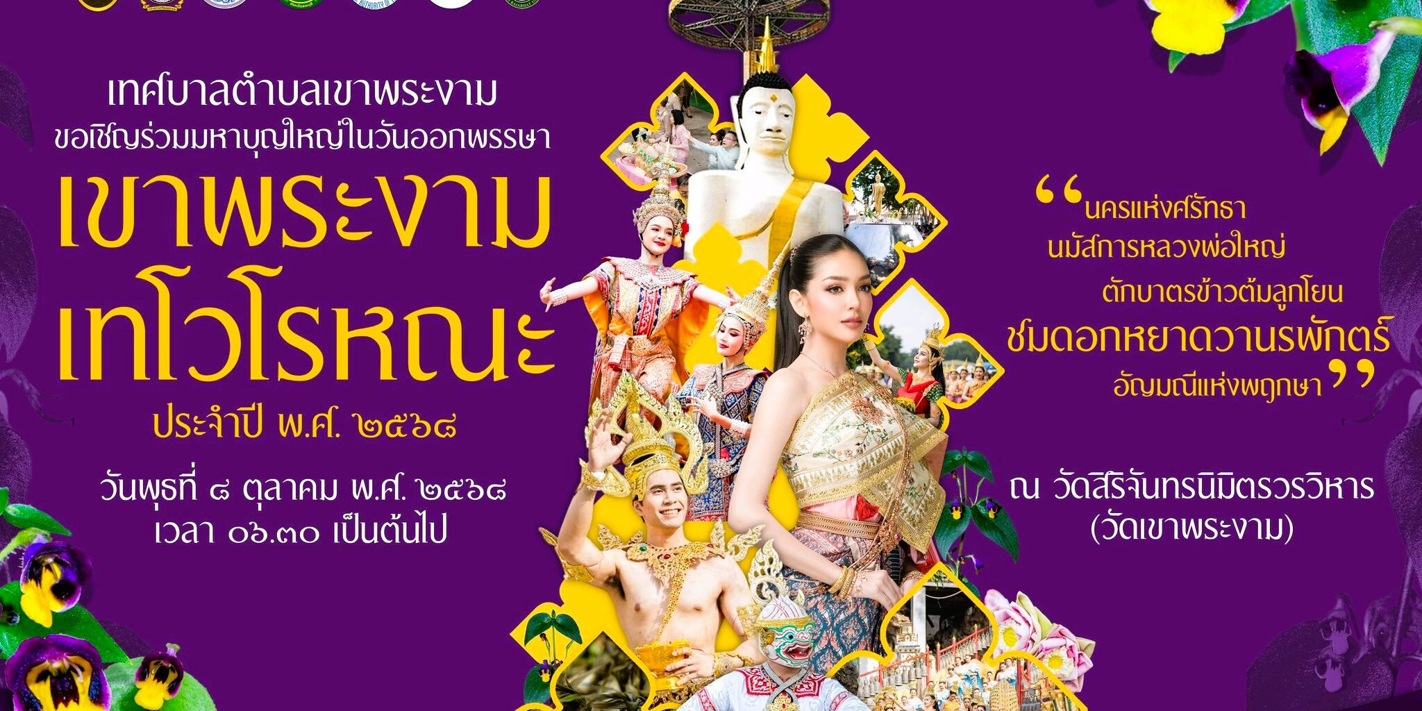 เทศบาลตำบลเขาพระงาม ขอเชิญร่วมสร้างบุญครั้งยิ่งใหญ่ในวันออกพรรษาเขาพระงาม เทโวโรหณะ ประจำปี 2568 “นครแห่งศรัทธานมัสการหลวงพ่อใหญ่ ตักบาตรข้าวต้มลูกโยน ชมดอกหยาดวานรพักตร์ อัญมณีแห่งพฤกษา” 1 ปี มีเพียงครั้งเดียว ในวันพุธที่ 8 ตุลาคม 2568 ณ วัดสิริจันทรนิมิตรวรวิหาร ตำบลเขาพระงาม อำเภอเมืองลพบุรี จังหวัดลพบุรี ตั้งแต่เวลา 06.30 น. เป็นต้นไป