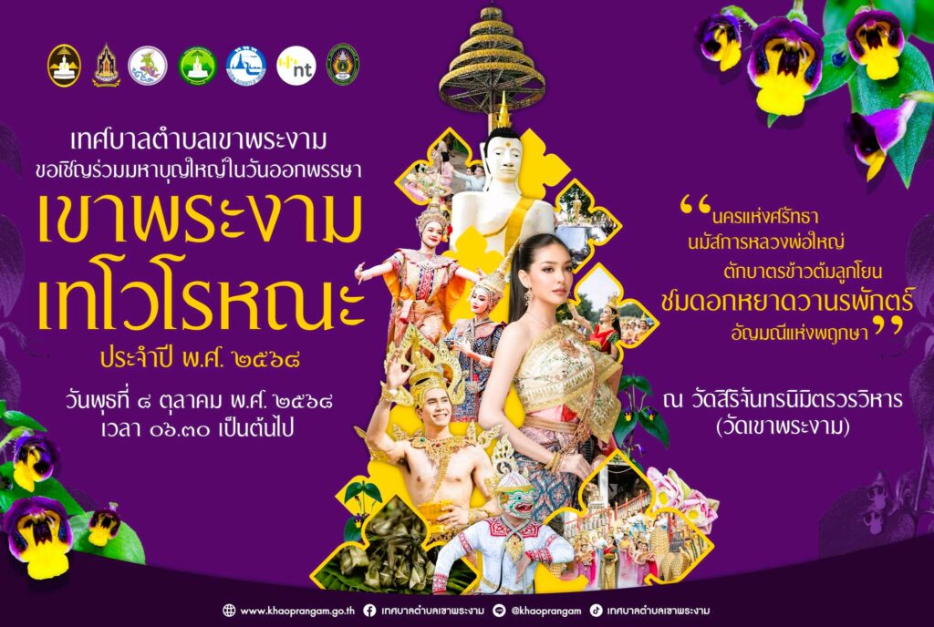 เทศบาลตำบลเขาพระงาม ขอเชิญร่วมสร้างบุญครั้งยิ่งใหญ่ในวันออกพรรษาเขาพระงาม เทโวโรหณะ ประจำปี 2568 “นครแห่งศรัทธานมัสการหลวงพ่อใหญ่ ตักบาตรข้าวต้มลูกโยน ชมดอกหยาดวานรพักตร์ อัญมณีแห่งพฤกษา” 1 ปี มีเพียงครั้งเดียว ในวันพุธที่ 8 ตุลาคม 2568 ณ วัดสิริจันทรนิมิตรวรวิหาร ตำบลเขาพระงาม อำเภอเมืองลพบุรี จังหวัดลพบุรี ตั้งแต่เวลา 06.30 น. เป็นต้นไป