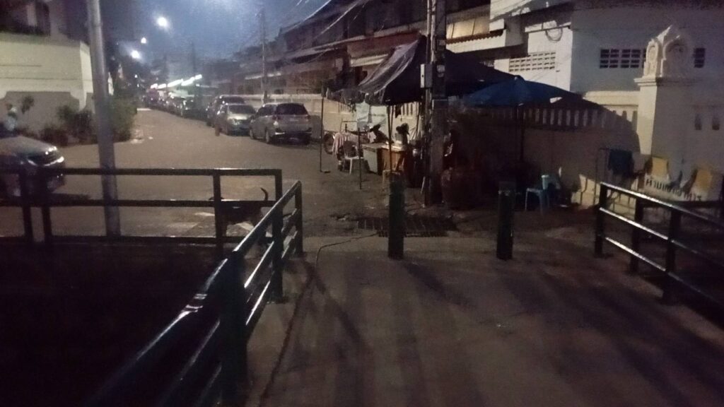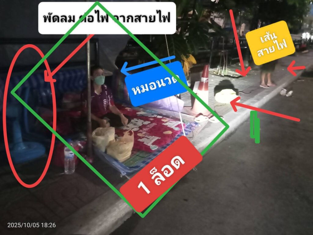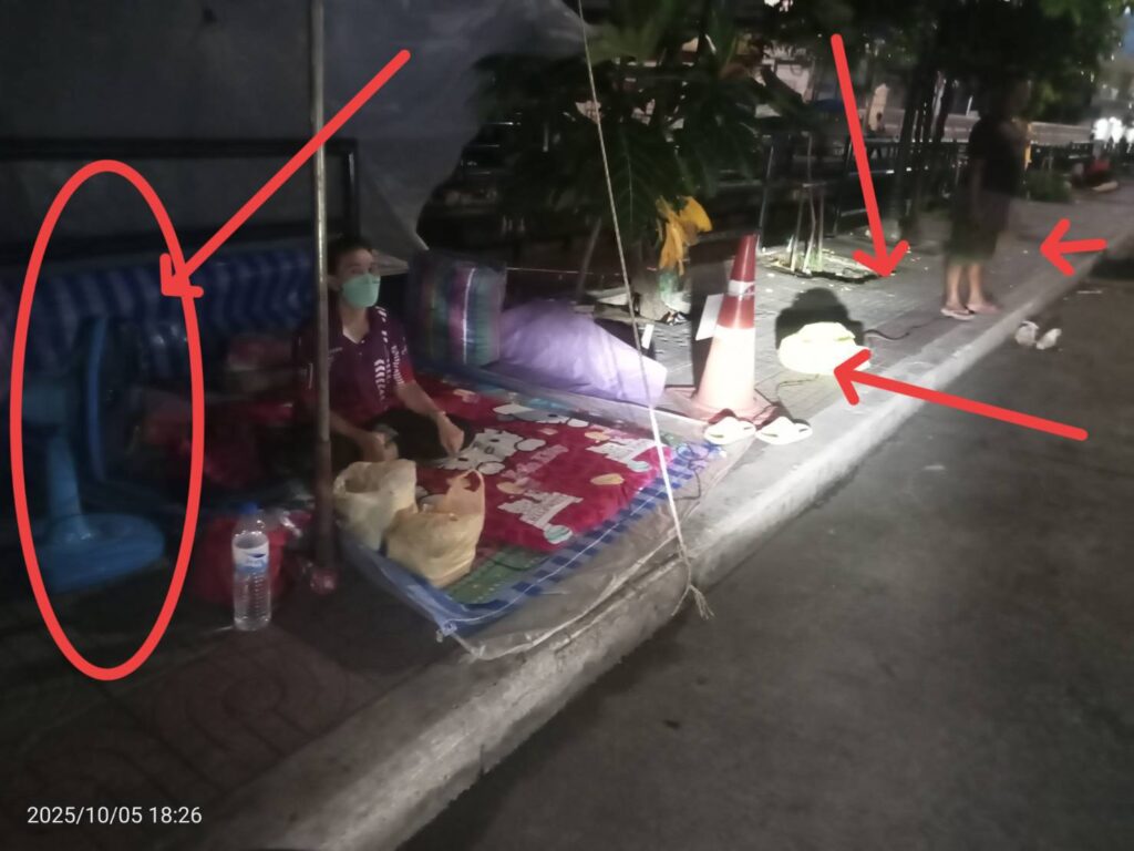 หมอนวดเช่า โดยมีการกั้นแบ่งบนทางเดินบนบาทวิถีทำเป็นล็อคๆ ลากสายไฟมาต่อ เสียค่าเช่า