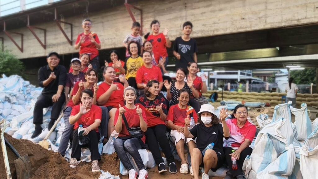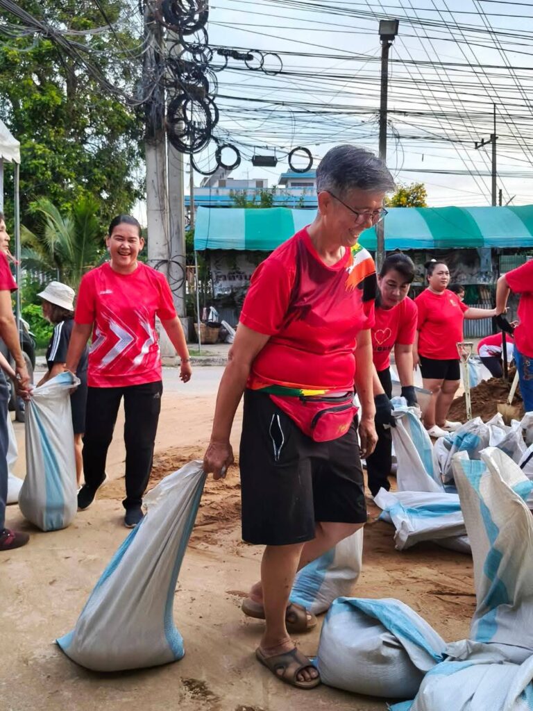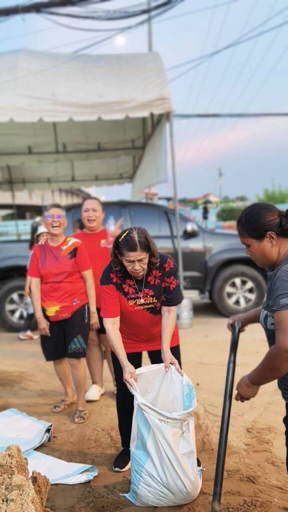 วันอาทิตย์ที่ 5 ตุลาคม 2568 เวลา 17.30 น. กลุ่มออกกำลังกายชุมชนบ้านบางแคในสามัคคี ร่วมกันกรอกกระสอบทรายเพื่อนำไปใช้ในการไปอุดจุดต่างๆ ที่น้ำไหลรั่วซึมในเขตเทศบาลเมืองสิงห์บุรี ณ บริเวณใต้สะพานบางระจัน