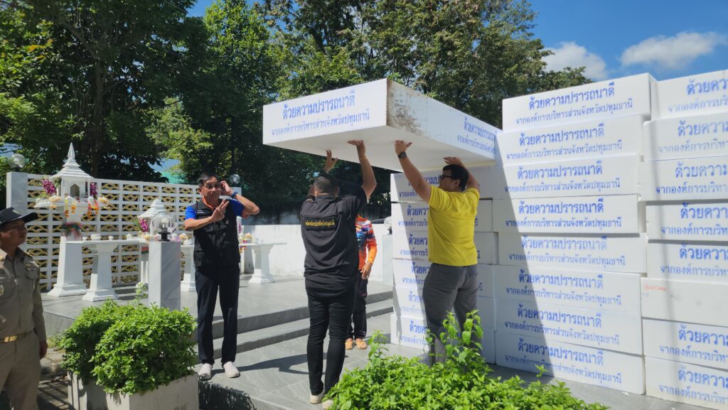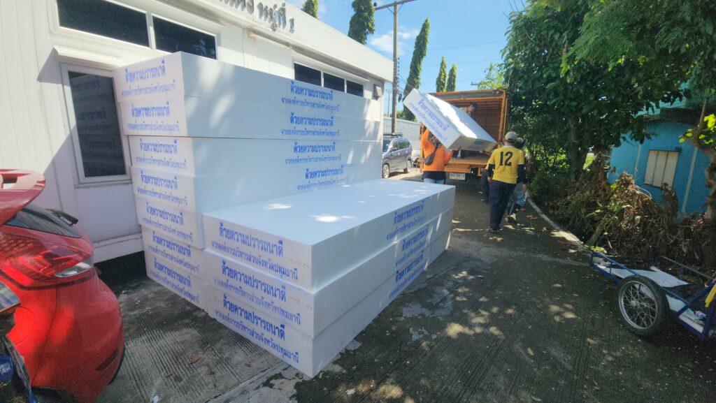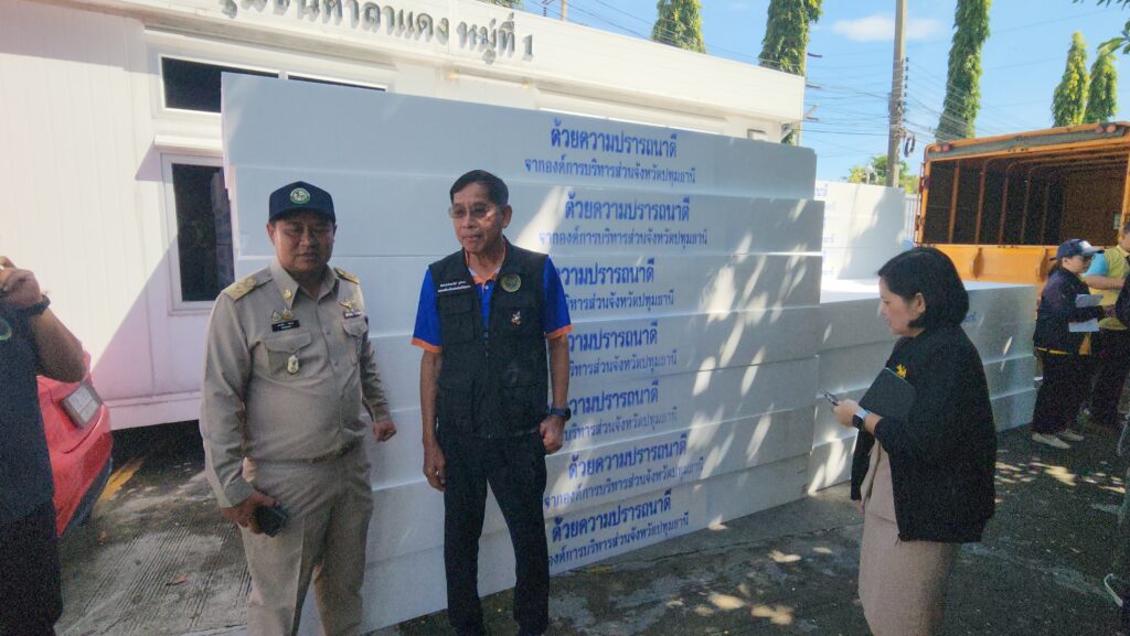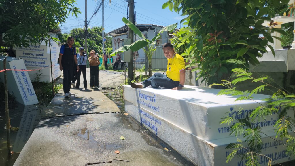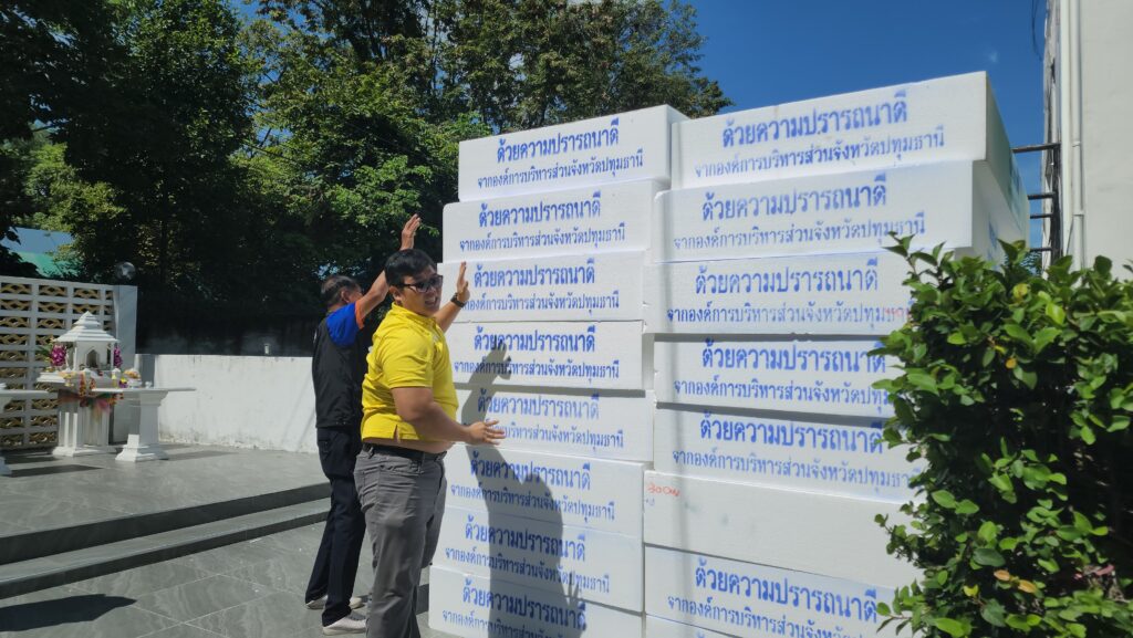 โดย พล.ต.ท.คำรณวิทย์ ธูปกระจ่าง นายก อบจ.ปทุมธานี กล่าวว่า เนื่องจากสถานการณ์น้ำเอ่อล้นริมแม่น้ำเจ้าพระยาจะเข้าท่วมขังบริเวณที่อยู่อาศัยและบ้านเรือนของประชาชนที่อยู่นอกคันกั้นน้ำ บางส่วนได้รับผลกระทบมานานแล้ว เราจึงได้มอบแพโฟมให้ เพื่อให้สามารถขนย้ายสิ่งของได้ แม้แต่ตู้เย็นก็สามารถวางได้ รถจักรยานยนต์ก็สามารถนำมาไว้บนโฟมเพื่อให้ลอยขึ้น ซึ่งพี่น้องประชาชนได้ร้องขอมาเยอะจึงรีบดำเนินการ รวมถึงได้ประสานงานกับเทศบาลท้องถิ่นที่อยู่ริมแม่น้ำ ให้รีบมารับเพื่อนำไปมอบให้พี่น้องประชาชนที่เดือดร้อน เพราะว่าเราเห็นว่าแพโฟมมีประโยชน์ต่อพี่น้องประชาชนจริง ๆ นอกจากนี้แพโฟมยังไม่เป็นสื่อนำไฟฟ้า หากเป็นเรือเหล็กก็อาจจะถูกไฟฟ้าดูดได้กรณีที่มีกระแสไฟรั่วในน้ำ เราจึงได้ระดมเร่งดำเนินการย้ายปลั๊กไฟฟ้าและมิเตอร์ไฟฟ้าขึ้นที่สูง พร้อมทั้ง เตรียมจัดหาเครื่องตรวจ ไฟรั่ว จากทางสถาบันเทคโนโลยีพระจอมเกล้าเจ้าคุณทหารลาดกระบัง เพื่อแจกจายให้กับ อปท. และ ประชาชนที่ถูกน้ำท่วม ส่วนสถานการณ์น้ำเราก็ต้องเฝ้าระวังในทุกวัน เราก็ต้องติดตามข่าวตลอดเนื่องจากจะมีพายุเข้ามา