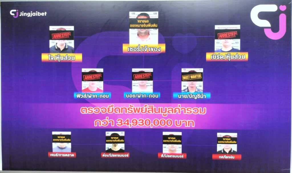 เจ้าหน้าที่ตำรวจ สภ.บางแม่นาง ตำรวจภูธรจังหวัดนนทบุรี ได้ทำการสืบสวนพบว่า เว็บพนันออนไลน์ จริงใจเบ็ต มีกลุ่มผู้รับผลประโยชน์หลายราย และเป็น กลุ่มเครือข่ายเว็บพนันออนไลน์ขนาดใหญ่ มีเส้นทางการเงินหมุนเวียนมากกว่า 1,000 ล้านบาท จึงได้รวบรวมพยานหลักฐาน ขออนุญาตศาลจังหวัดนนทบุรี ออกหมายจับกลุ่มผู้จัดให้มีการเล่น การพนันออนไลน์,กลุ่มบัญชีพักเงิน,กลุ่มบัญชีถอนเงินสด,กลุ่มหุ้นส่วนเว็บพนัน และ เจ้าของเว็บพนันออนไลน์ ซึ่งเป็นกระทำความผิด ในข้อหา “ร่วมกันจัดให้มีการเล่น หรือทำอุบายล่อ ช่วยประกาศโฆษณา หรือชักชวนโดยทางตรงหรือทางอ้อม ให้ผู้อื่นเข้าเล่น หรือเข้าพนันในการเล่นทางสื่ออิเล็กทรอนิกส์ ซึ่งมิได้รับอนุญาตจากเจ้าพนักงาน,ร่วมกันฟอกเงิน”