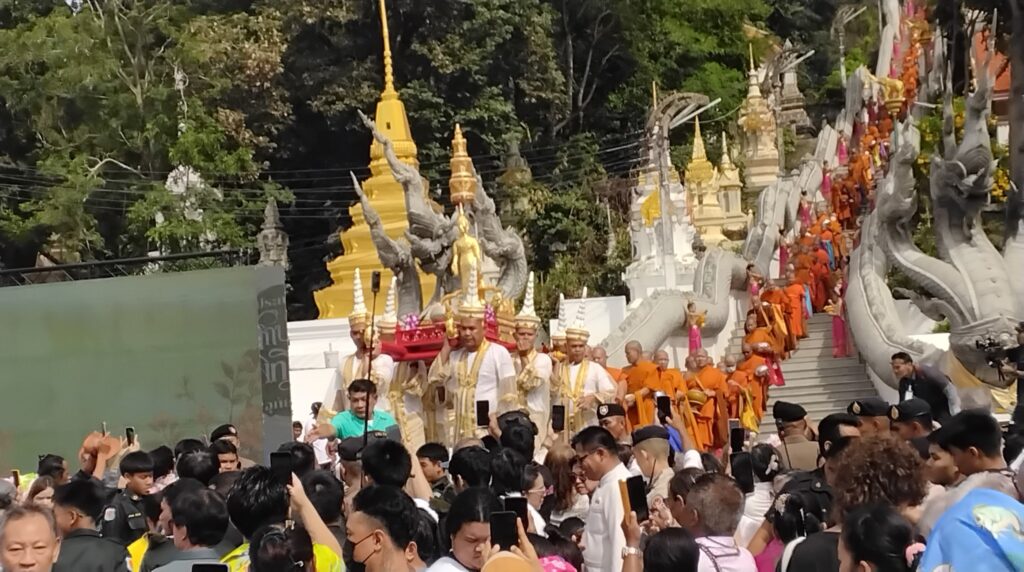 ไฮไลต์ของงานอยู่ที่ ขบวนพระพุทธรูปปางเปิดโลก ซึ่งเป็นสัญลักษณ์ของการเสด็จกลับสู่โลกมนุษย์ พร้อมข้าวต้มลูกโยนและข้าวสารอาหารแห้งที่พุทธศาสนิกชนร่วมกันถวายด้วยจิตศรัทธาอย่างล้นหลาม