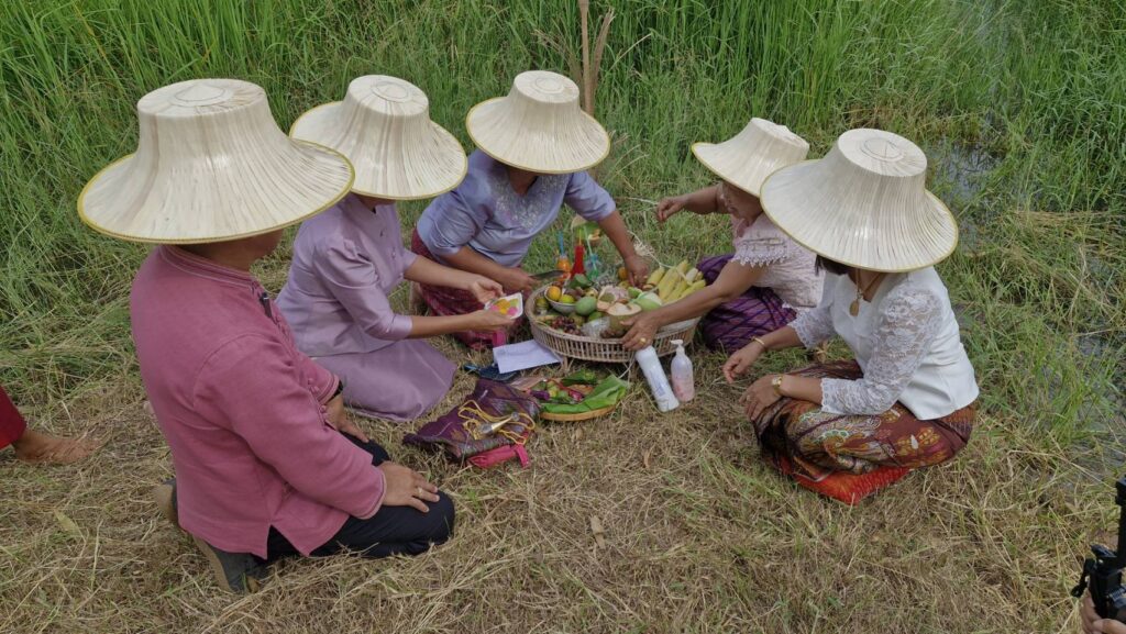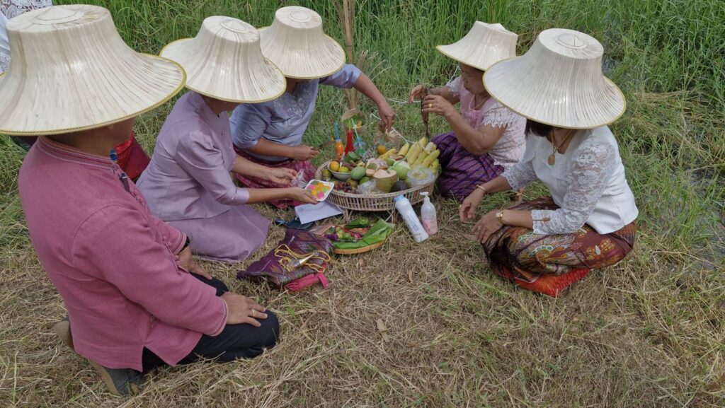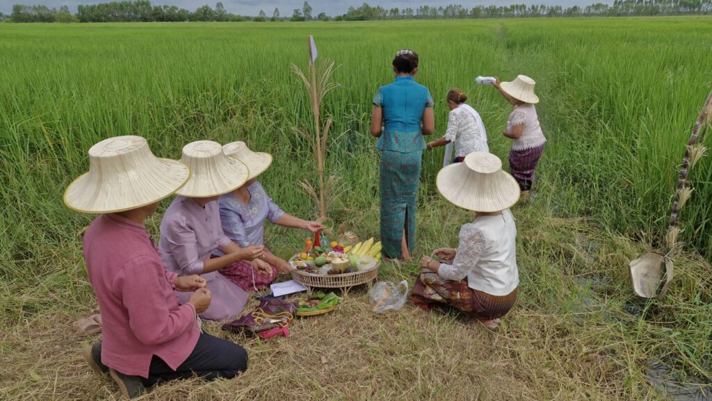 ซึ่งประเพณีเรียกขวัญข้าว เป็นประเพณีที่เชื่อกันว่า มีเทพเจ้า เป็นเจ้าของ มีอำนาจในการดลบันดาล ให้ผู้ปลูกข้าว ได้ผลผลิตมากหรือน้อย คือ เจ้าแม่โพสพ ตามความเชื่อว่าแม่โพสพ มีพระคุณจึงต้องทำขวัญข้าว เป็นการกล่าวขอขมา ต่อต้นข้าวทุกครั้งที่มีการเปลี่ยนแปลงเกิดขึ้นกับข้าว ทั้งการเกิดเองตามธรรมชาติ และจากการที่มนุษย์จะกระทำอะไรก็ตาม กับต้นข้าวเช่น เกี่ยวข้าว อีกทั้งเพื่อเป็นการขอบคุณและเอาใจพระแม่โพสพ ที่ให้ความอุดมสมบูรณ์แก่ผืนนา และเพื่อเป็นการขออภัยและเรียกขวัญพระแม่โพสพ เป็นสิริมงคลดลบันดาลให้มั่งมียิ่งขึ้น