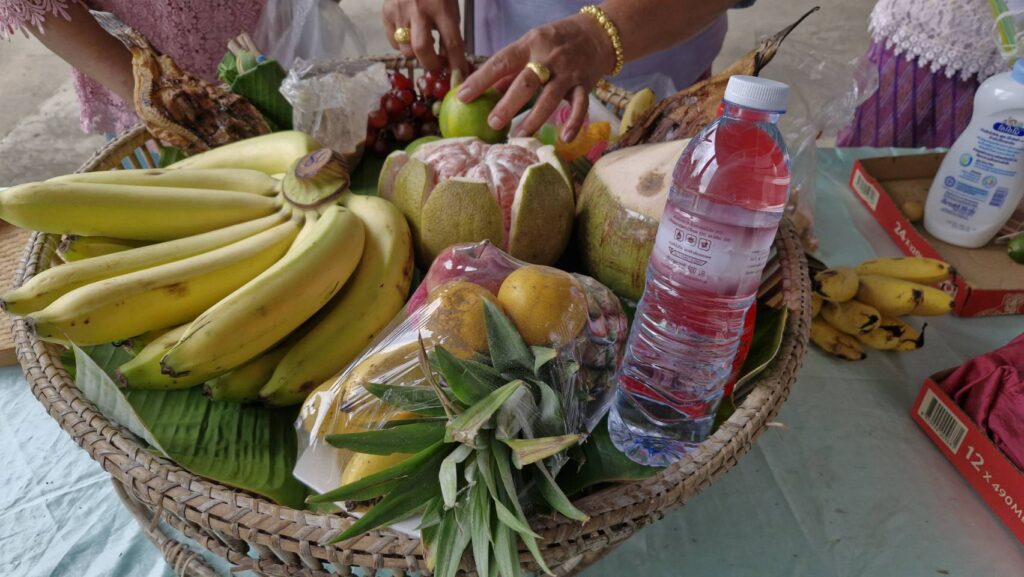 ประเพณีทำขวัญข้าว จะมี อยู่ 2 ช่วง คือ ช่วงที่ข้าวตั้งท้อง และช่วงข้าวพร้อมเกี่ยว โดยในแต่ละช่วงจะมีเครื่องเซ่นไม่เหมือนกัน เครื่องเซ่นของการทำขวัญข้าวตอนตั้งท้องด้วยความเชื่อที่ว่า แม่โพสพเป็นมนุษย์หรือสิ่งมีชีวิตเช่นเดียวกัน พอข้าวตั้งท้อง จึงเชื่อว่าจะอยากทานอาหารเหมือนคนท้อง สิ่งที่ขาดไม่ได้ในเครื่องเซ่นช่วงดังกล่าวจึงเป็นของรสเปรี้ยว อ้อย น้ำมะพร้าว เป็นต้น นับว่าเป็นการสืบสานประเพณีการทำขวัญข้าว ของชาวบ้านในพื้นที่อำเภอพิมาย ที่เคยถือปฏิบัติสืบทอดกันมายาวนานหลายปี