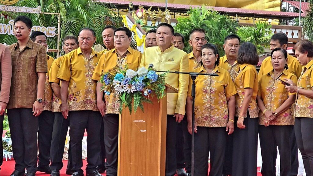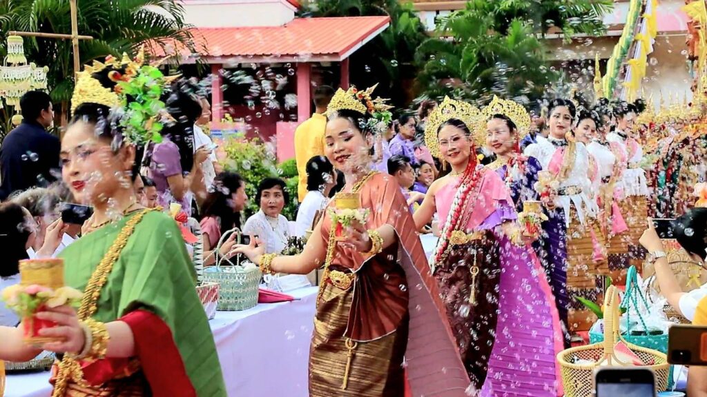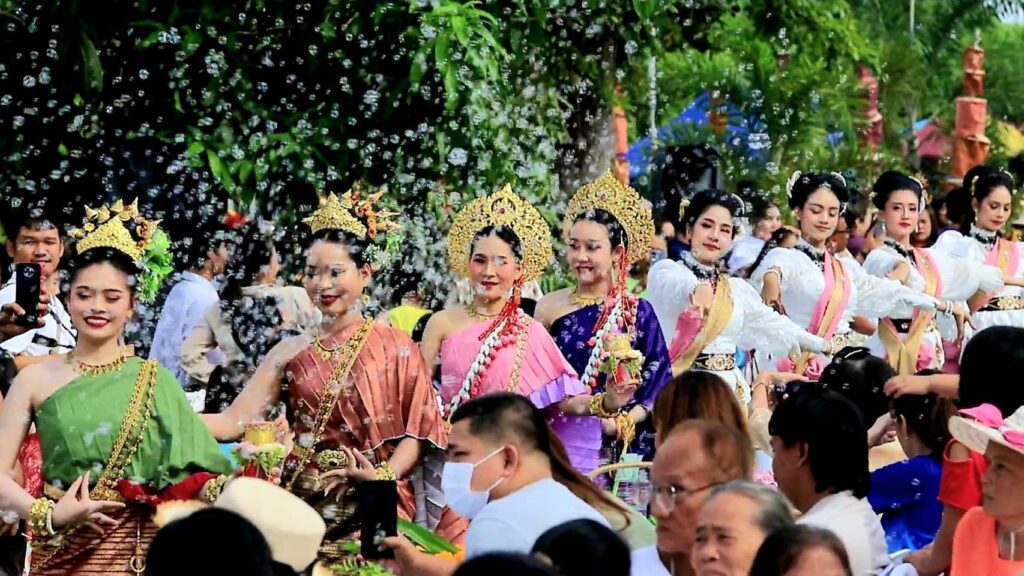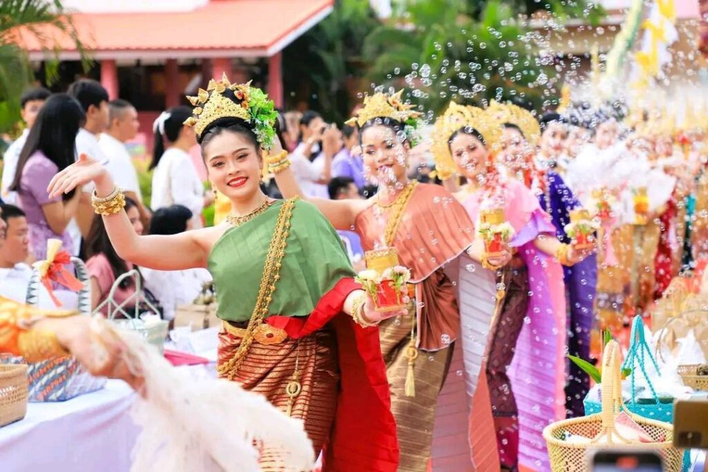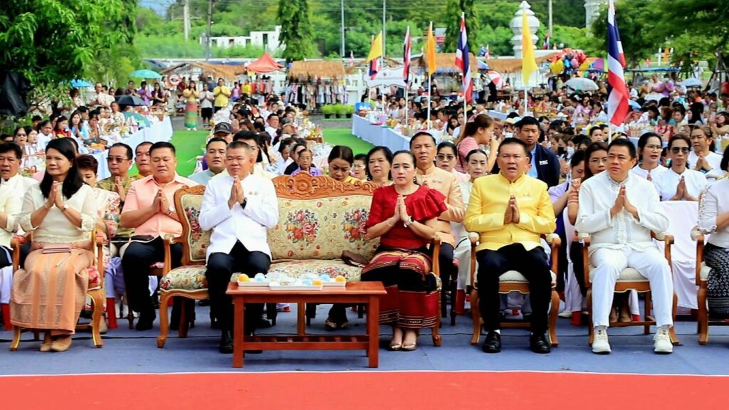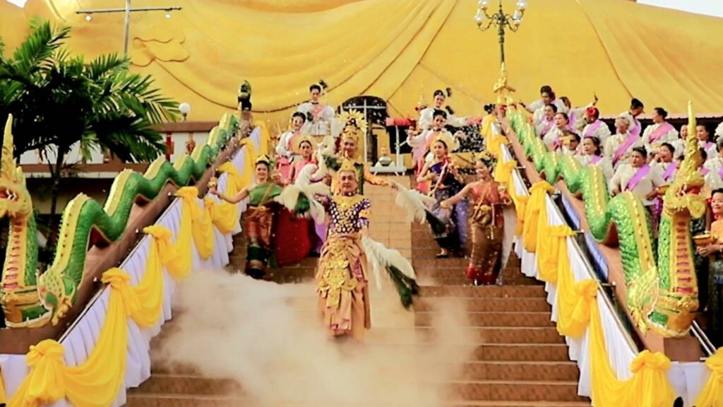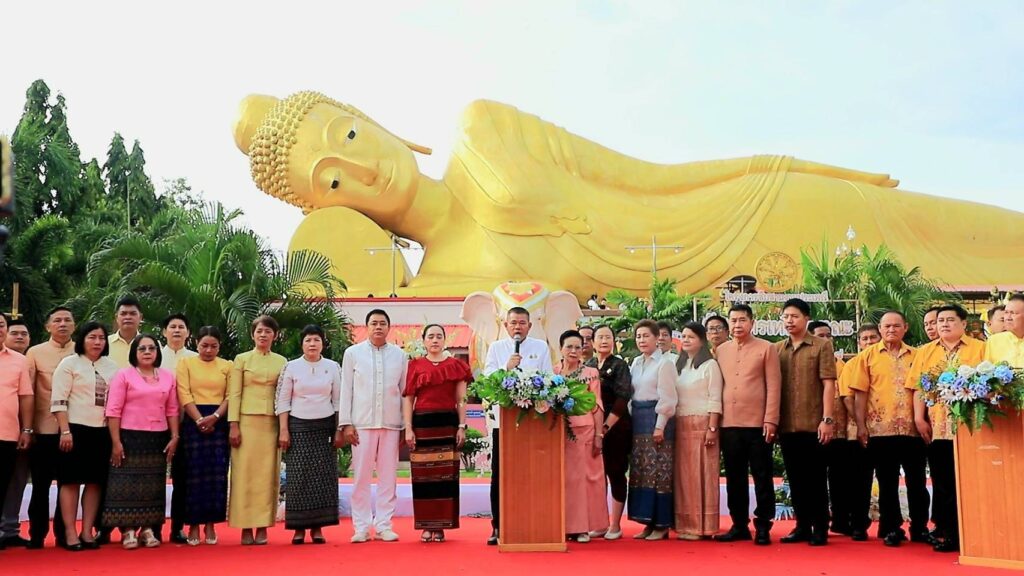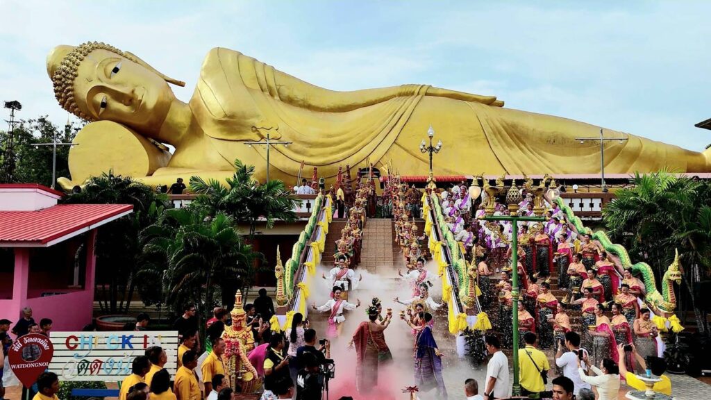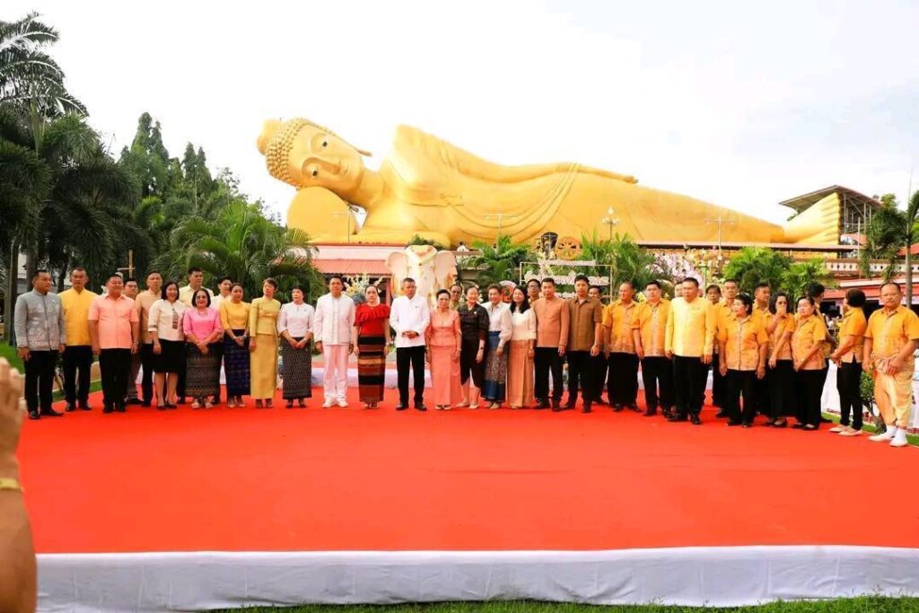 ซึ่งการจัดงานในปีนี้ ได้จัดรูปขบวนให้มีผู้แต่งกายเป็น เทวดา พระอินทร์ นางฟ้า เดินนำพระสงฆ์ ลงมาจาก พระพุทธไสยาสน์องค์ใหญ่ที่สุดของจังหวัดลพบุรี ที่มีความยาว 45 เมตร กว้าง 4 เมตร และสูง 16 เมตร ซึ่งเป็นที่เลื่อมใสศรัทธาขอพุทธศาสนิกชนทั่วไปรวมถึงเป็นการส่งเสริมการท่องเที่ยวตามวิถีไทย วิถีพุทธ เนื่องในเทศกาลวันออกพรรษา ซึ่งพระสงฆ์ ได้เดินลงเพื่อมารับบิณฑบาตจากพุทธศาสนิกชนที่มายืนรอใส่บาตรกันอย่างเนื่องแน่น โดนที่ก่อนเริ่มงานสายฝนได้ตกโปรยปรายลงมา พุทธศาสนิกชนบางรายต้องกางร่ม สวมเสื้อกันฝน และบางรายเอาถุงพลาสติกคลุมหัว แต่ทุกคนต่างแสดงออกถึงความตั้งใจที่จะร่วมทำบุญเพื่อความเป็นสิริมงคลให้แก่ตนเองและครอบครัวเนื่องในเทศกาลวันออกพรรษาอีกด้วย