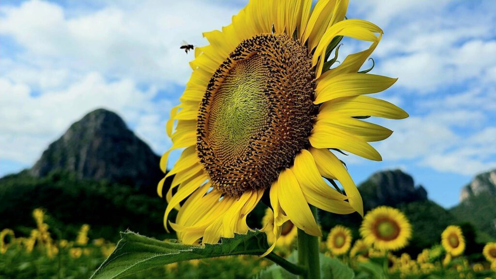 สำหรับดอกทานตะวัน ไม่ใช่แค่ความสวย แต่ยังมี ประโยชน์หลากหลายจาก “ทานตะวัน” พืชเศรษฐกิจที่ยั่งยืน สำหรับการปลูกดอกทานตะวันแปลงนี้ นอกเหนือจากการเป็นแหล่งท่องเที่ยวที่ดึงดูดผู้คนให้มาเยือนแล้ว ดอกทานตะวันยังเป็นพืชเศรษฐกิจที่มีประโยชน์หลากหลายและสนับสนุนการเกษตรอย่างยั่งยืน เป็นพืชน้ำมันคุณภาพสูง เมล็ดทานตะวัน สามารถนำไปสกัดเป็นน้ำมันทานตะวัน ซึ่งอุดมไปด้วยไขมันไม่อิ่มตัวเชิงซ้อน เช่น กรดไลโนเลอิก ที่ช่วยลดคอเลสเตอรอล เป็นประโยชน์ต่อสุขภาพหัวใจและหลอดเลือด และยังใช้ในการผลิตอาหารสัตว์ กากเมล็ดทานตะวันที่เหลือจากการสกัดน้ำมัน เป็นผลพลอยได้ที่มีโปรตีนสูง สามารถนำไปผลิตเป็นอาหารสัตว์ที่มีคุณภาพ เป็นแหล่งอาหารสุขภาพ ต้นอ่อนทานตะวันเป็นที่นิยมอย่างมากในกลุ่มผู้รักสุขภาพ เพราะมีโปรตีน วิตามิน (A, B2, E, D, K) และสารต้านอนุมูลอิสระสูง ช่วยบำรุงสายตา ผิวพรรณ และชะลอความชรา อีกทั้ง ทานตะวัน ยังเป็นพืชเพื่อการฟื้นฟูดิน มีระบบรากที่ลึก ช่วยปรับปรุงสภาพดินให้มีความร่วนซุย และเพิ่มฮิวมัสให้กับดิน ทำให้ดินมีความอุดมสมบูรณ์มากขึ้น เหมาะสำหรับการปลูกพืชหมุนเวียนในรอบต่อไป