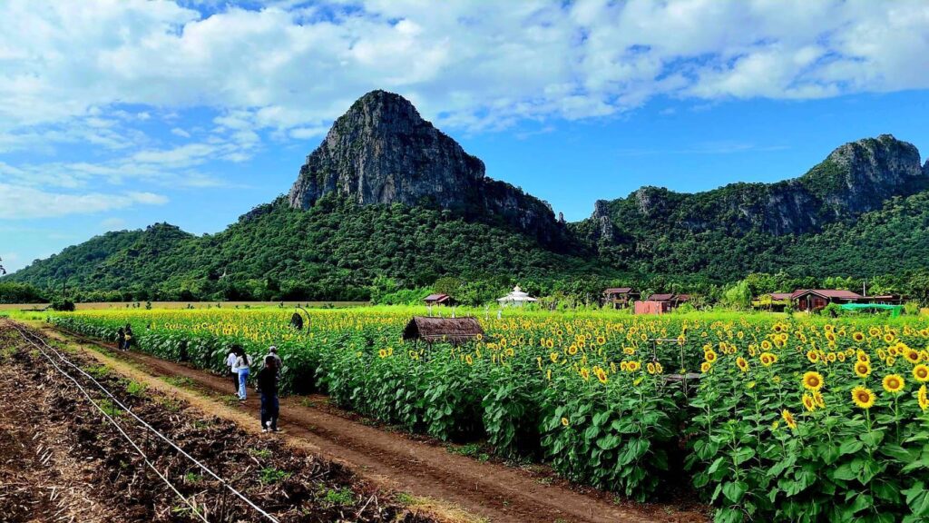 ซึ่ง นายรัฐพล ธุระพันธ์ นายอำเภอเมืองลพบุรี ได้นำสื่อมวลชลลงพื้นที่ เพื่อประชาสัมพันธ์การท่องเที่ยว ทานตะวันแปลงแรกของจังหวัดลพบุรี ซึ่งซึ่งเป็นการเพาะปลูกทานตะวันนอกฤดูกาล (ปกติ จะบานช่วง ปลายเดือน พฤศจิกายน – มกราคม ของทุกปี ซึ่งทุงทานตะวันแปลงนี้ มีจุดเด่นที่ไม่เหมือนใคร โดยทุ่งดอกทานตะวัน ของคุณจำรัส อินทร์เผือก เกษตรกรผู้มากประสบการณ์วัย 54 ปี ใช้พื้นที่กว่า 4 ไร่ ปลูกทานตะวันเพื่อการท่องเที่ยวแบบเกษตรวิถีไทย ซึ่งจะมีฉากหลังภูเขาสามลูกสุดอลังการ ไม่ได้มีดีแค่ความสวยงามของดอกไม้สีทองเท่านั้น แต่ยังมีทัศนียภาพอันโดดเด่นที่ยากจะหาที่ใดเหมือน โดยมีเทือกเขาที่สลับซับซ้อนถึง 3 ลูก ได้แก่ เขาจีนแล, เขากระดึง, และ เขาโหนกวัว เป็นฉากหลังสุดอลังการ ตัดกับท้องฟ้าสีคราม ทำให้ภาพถ่ายที่นี่สวยงามและมีมิติที่ไม่ซ้ำใคร นักท่องเที่ยวจะได้ดื่มด่ำกับบรรยากาศที่เงียบสงบและงดงามราวกับภาพวาดจากธรรมชาติ และสัมผัสความงดงามของทุ่งดอกทานตะวันแรกของฤดูกาล พร้อมเรียนรู้เรื่องราวของพืชเศรษฐกิจที่สร้างทั้งความสุข และความยั่งยืนให้กับเกษตรกร โดยเฉพาะฉากหลังมีความสวยงามไม่ผิดหวัง ซึ่งถือเป็นการสร้างรายได้ให้กับเกษตรกรทั้งด้านการท่องเที่ยวเชิงเกษตร มีสินค้าโอทอป สินค้าชุมชน และผลิตภัณฑ์ แปรรูปจากเมล็ดทานตะวัน โดยเปิดให้นักท่องเที่ยวได้เข้าชมตั้งแต่วันนี้ ต่อเนื่องไปจนถึงวันที่ 20 ตุลาคม 2568 ค่าเข้าชมคนละ 20 บาท มีที่จอดรถให้ฟรี พิกัดใน Google Maps ไร่จำรัสเส 2