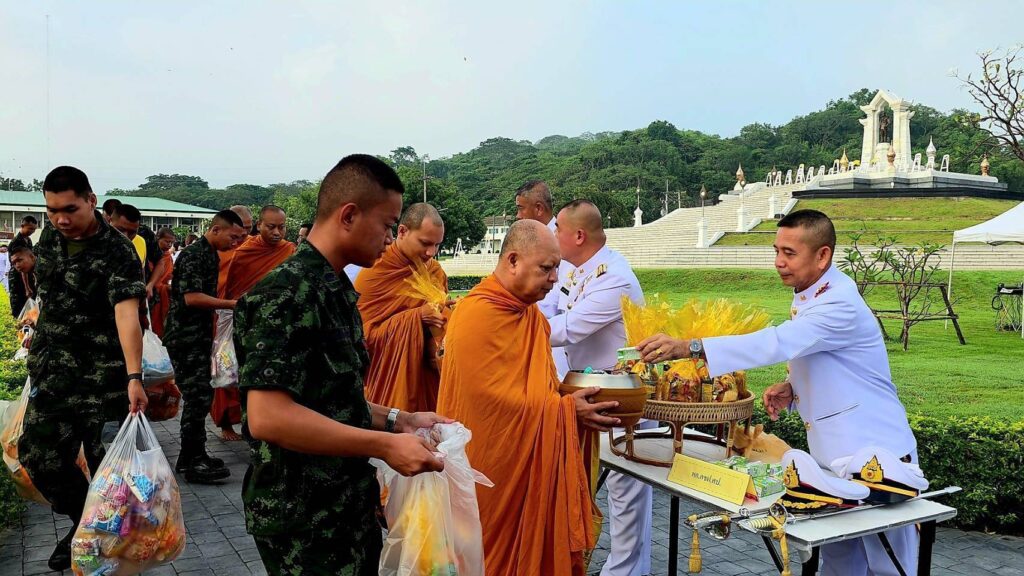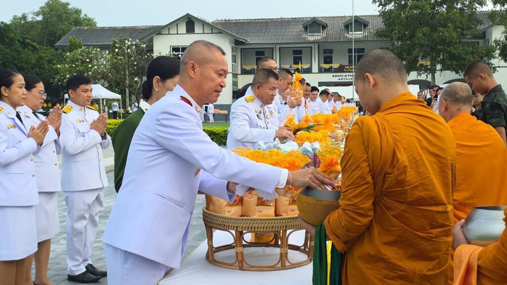 ที่ พระบรมราชานุสาวรีย์ พระบาทสมเด็จพระบรมชนกาธิเบศร มหาภูมิพลอดุลยเดชมหาราช บรมนาถบพิตร ภายในค่ายภูมิพลฯ ต.เขาพระงาม อ.เมือง จ.ลพบุรี พลตรี สมศักดิ์ นุตพันธุ์ ผู้บัญชาการศูนย์การทหารปืนใหญ่ ค่ายภูมิพลฯ เป็นประธาน นำผู้บังคับหน่วยทหารในพื้นที่ พร้อมด้วย สมคมแม่บ้านทหารบก หัวหน้าส่วนราชการ ผู้แทนหน่วยงานต่างๆ ในพื้นที่จังหวัดลพบุรี กว่า 30 หน่วยงาน เข้าร่วมพิธี ทำบุญตักบาตร ข้าวสาร อาหารแห้ง แด่พระสงฆ์ จำนวน 10 รูป เพื่อถวายเป็นพระราชกุศล